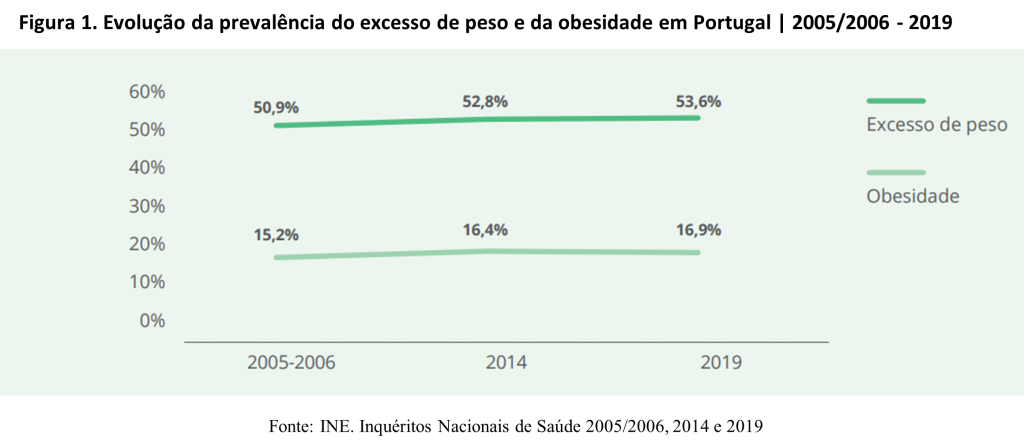Os dados do último Inquérito Nacional de Saúde (2019), divulgados pelo Instituto Nacional de Estatística, são reveladores da realidade nacional: no total 53,6% da população adulta portuguesa apresentava excesso de peso (pré-obesidade ou obesidade).2