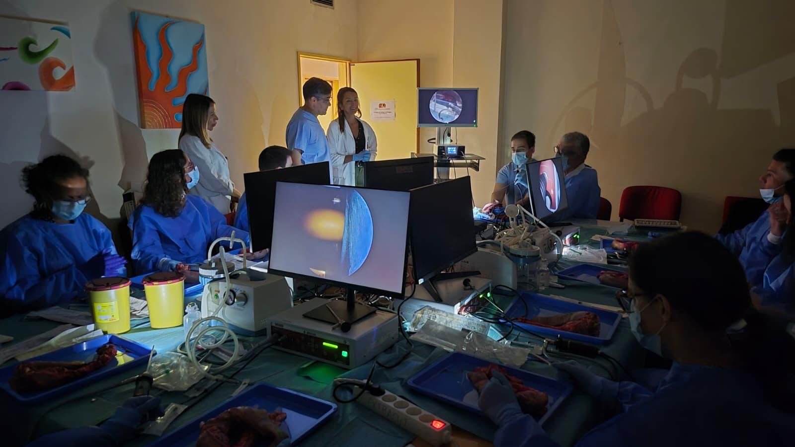 No HFF, local de realização dos workshops práticos, os participantes puderam experienciar o contributo das diferentes valências que intervêm na avaliação e tratamento do doente com esta condição. Tiveram, assim, à sua disposição workshops tais como: o papel da saúde oral no doente com disfagia orofaríngea; adaptação da alimentação e nutrição do doente com disfagia orofaríngea, aplicação do método de exploração volume-viscosidade (MECV-V); workshops sobre técnicas de avaliação instrumental como a videoendoscopia da deglutição, videofluoroscopia e manometria faringoesofágica de alta definição; workshops sobre estratégias de reabilitação pela terapia da fala, tratamento da sialorreia com recurso a injeção de toxina botulínica e também workshop cirúrgico “hands-on”, onde foram abordadas várias técnicas cirúrgicas utilizadas no tratamento destes doentes.