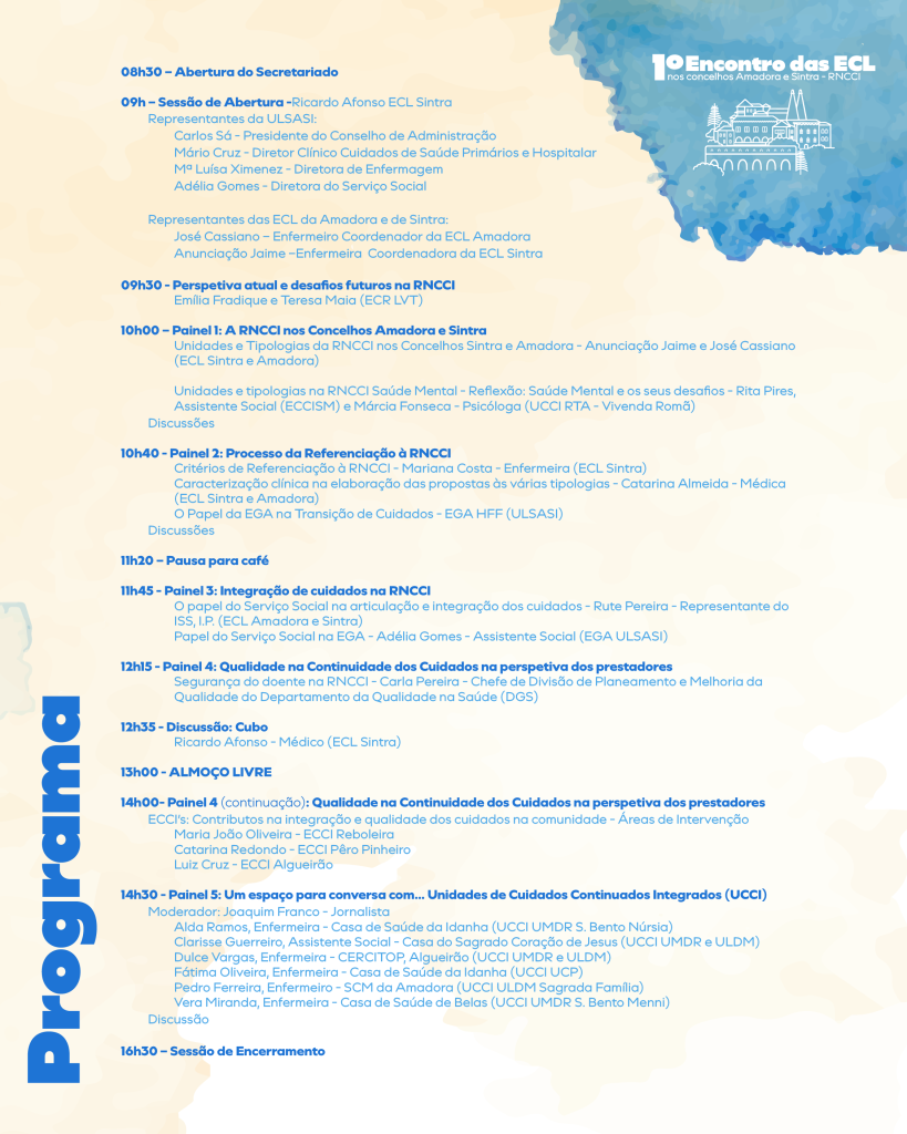 A sessão de abertura deste encontro vai contar com a presença de Carlos Sá, presidente do Conselho de Administração da ULS Amadora/Sintra.