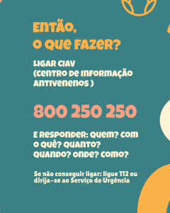 No caso de ingestão, mantenha a calma, não provoque o vómito e esteja atento a sintomas como náuseas, vómitos, salivação, dor no peito ou sensação de queimadura na boca. Ligue para o CIAV (Centro de Informação Antivenenos) ou para o 112 e explique a situação.