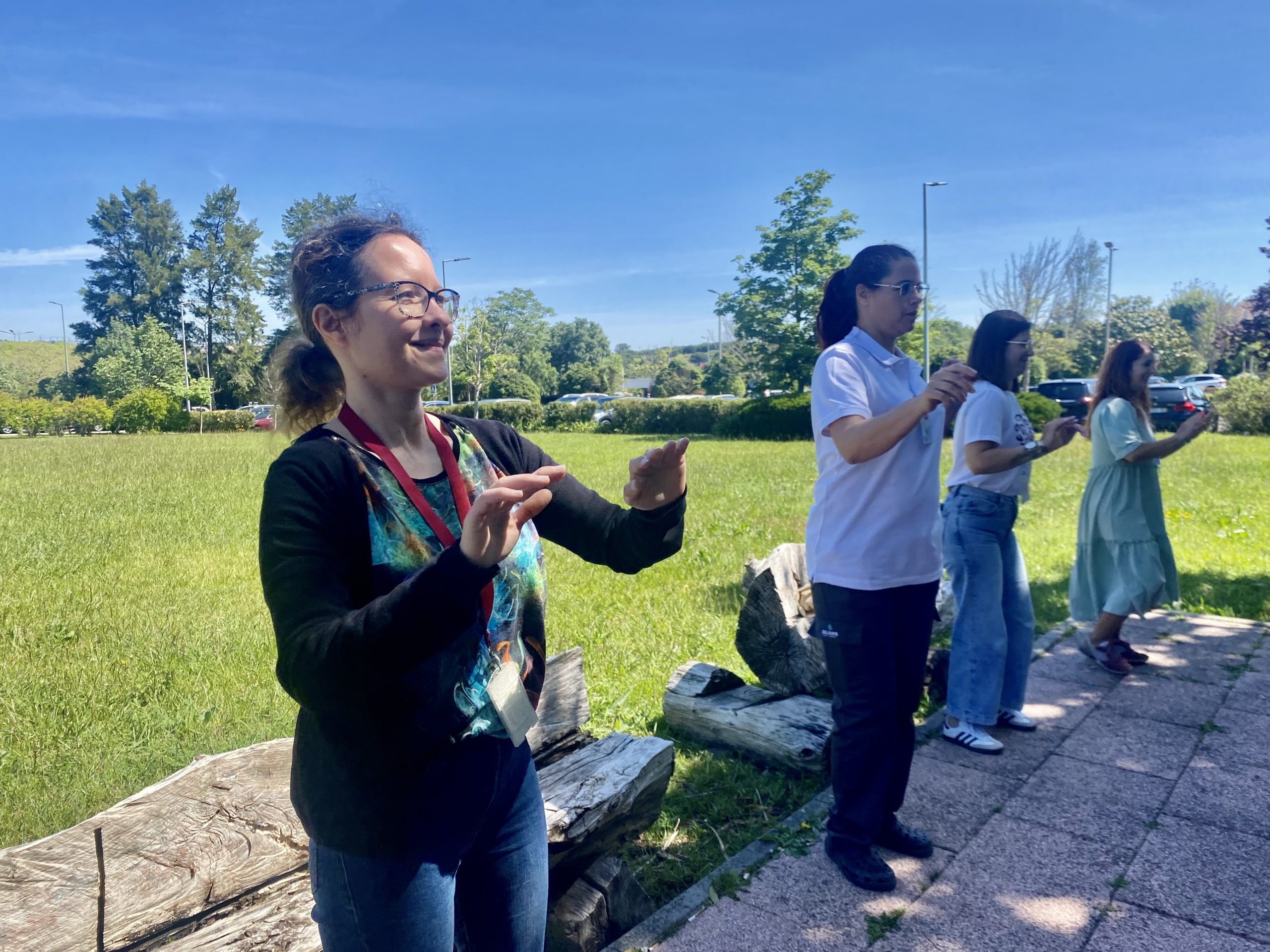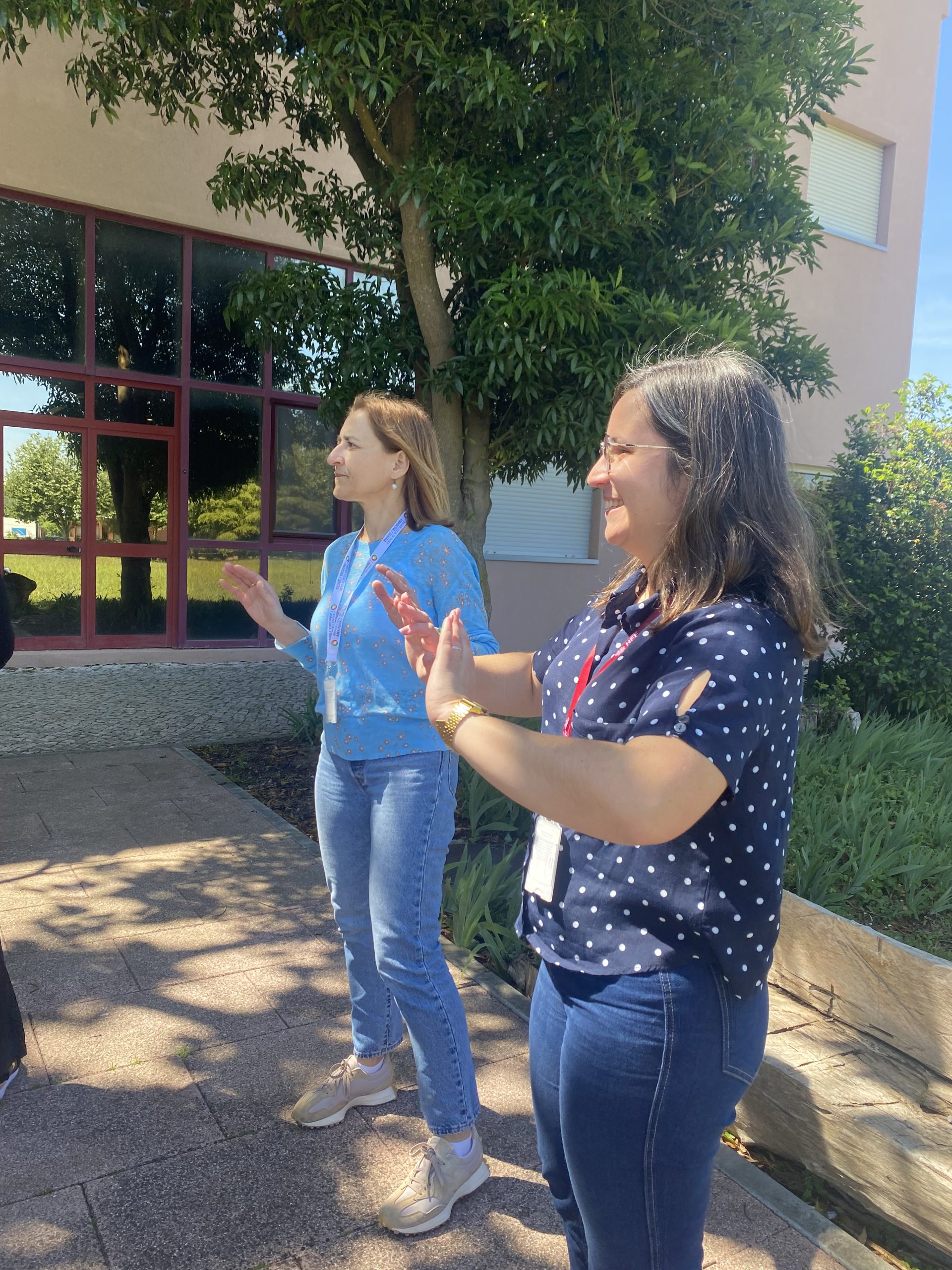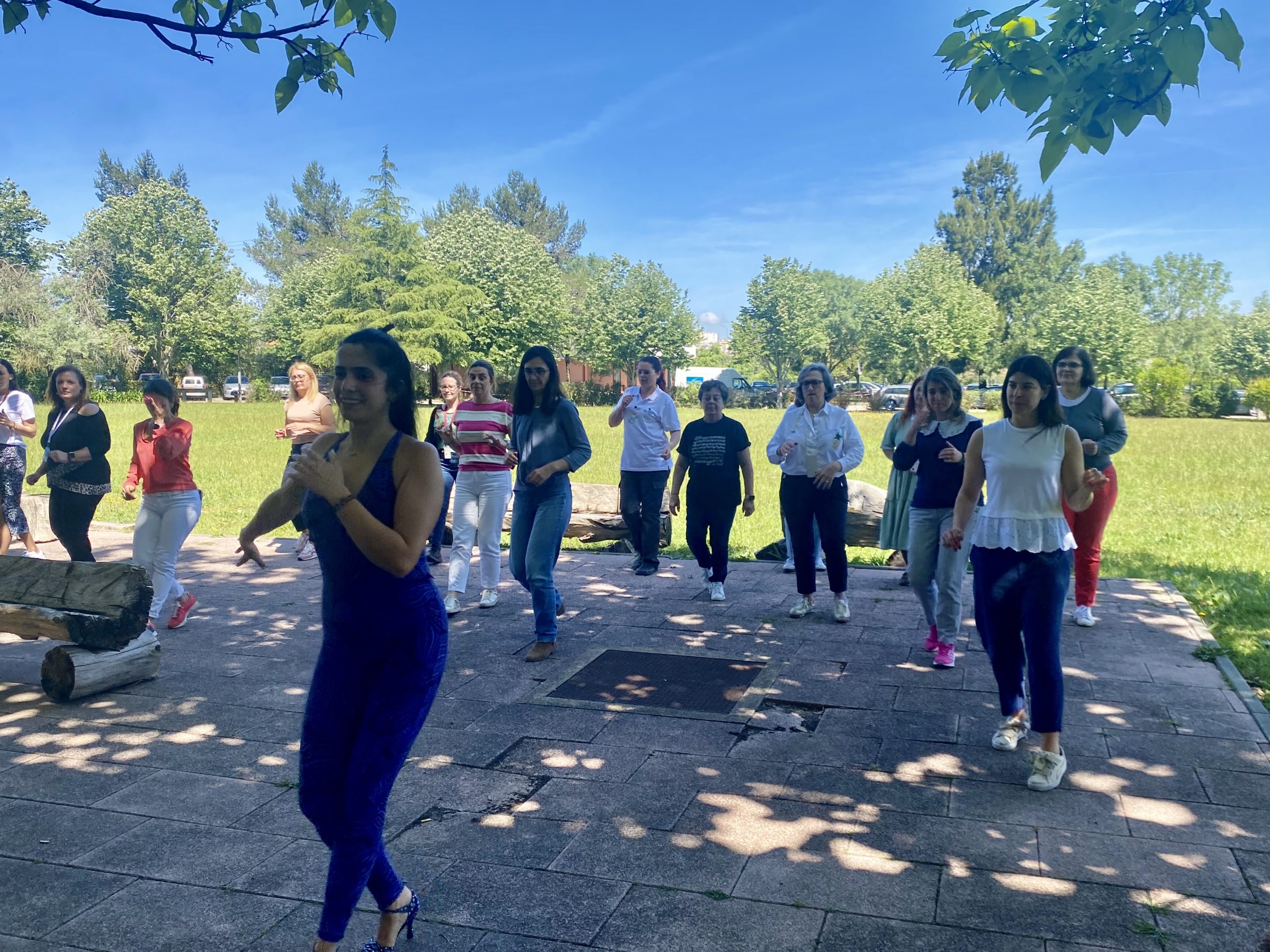 Reunindo Mães do hospital e dos cuidados de saúde primários, a sessão foi orientada por Mariana Lopes dos Santos, médica interna do quarto ano de medicina geral e familiar, na Unidade de Saúde Familiar Alma Mater, na Amadora, que além da sua atividade clínica, tem desde cedo, a dança como talento, tendo-o partilhado na manhã solarenga de hoje, ao som de diferentes ritmos musicais.