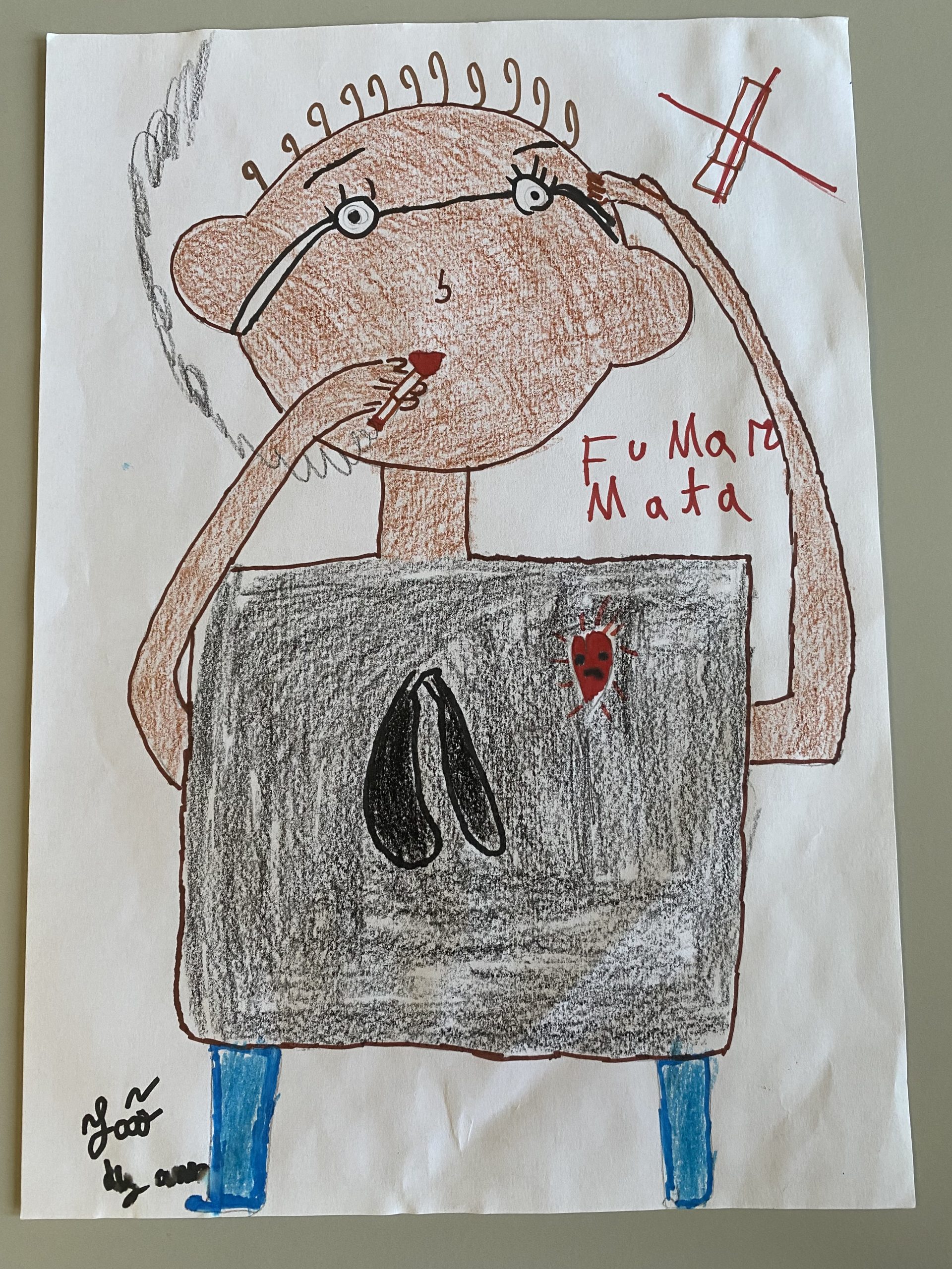 O objetivo foi desafiar as crianças e jovens hospitalizadas no Serviço de Pediatria ou seguidas na Consulta Externa e/ou Hospital de Dia de Pediatria do HFF, a realizarem desenhos e/ou trabalhos artísticos alusivos ao tema, de forma a alertaram o público em geral, os/as profissionais do HFF, as crianças/jovens e suas famílias para o tema do tabagismo.