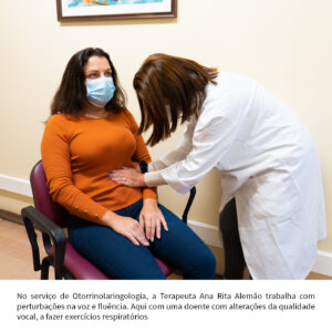 As cinco profissionais do Hospital Professor Doutor Fernando Fonseca (HFF) estão distribuídos por dois serviços, tendo em conta as suas áreas de especialização. Três integram o Serviço de Medicina Física e Reabilitação (MFR) e duas, o Serviço de Otorrinolaringologia (ORL).
