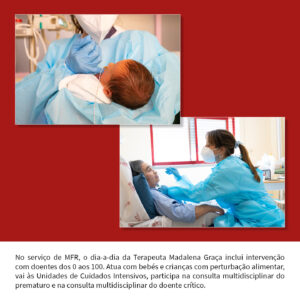 O Terapeuta da Fala é o profissional responsável pela avaliação, intervenção e estudo científico das perturbações da comunicação humana e da deglutição, ao longo de todas as fases da vida. As principais áreas de intervenção situam-se ao nível da linguagem oral e escrita, da fala, da voz e da alimentação de forma segura. As/os terapeutas estão integradas/os em equipas multidisciplinares nos diferentes serviços, de internamento e ambulatório. Contribuem ainda na realização e participação em projetos de investigação e no acolhimento anual de estagiários de várias instituições.