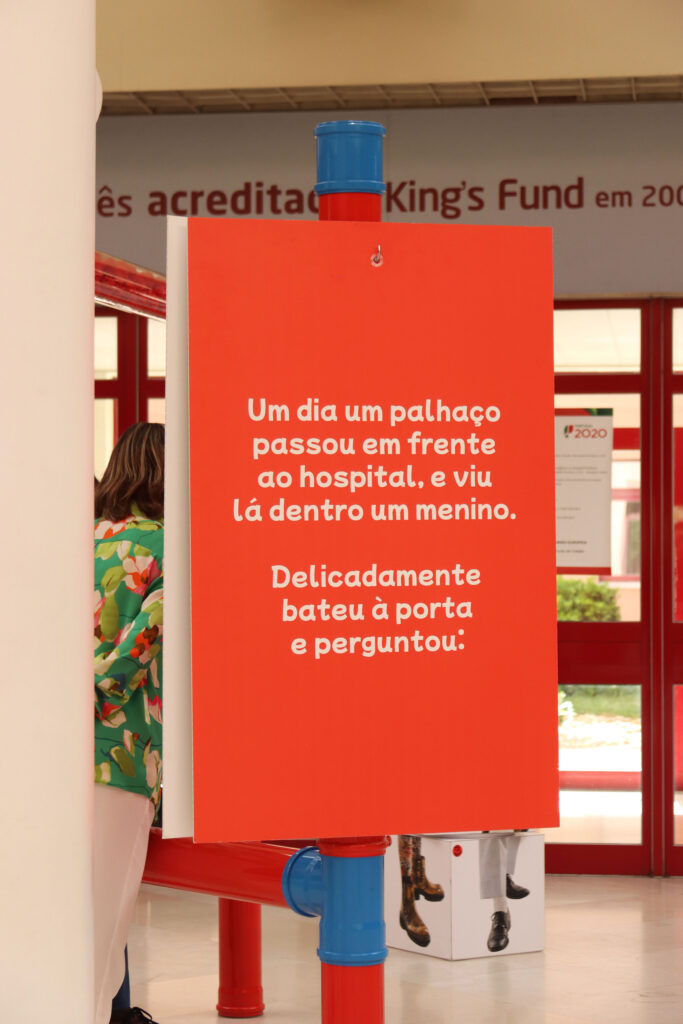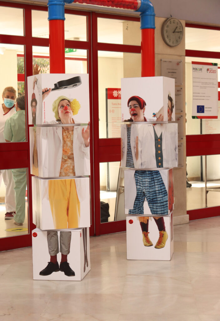 «Da ponta do nariz ao sorriso de uma criança» é uma exposição interativa e vai estar patente no átrio principal do HFF, até ao dia 19 de setembro. Através de cores apelativas e cubos rotativos que reproduzem a imagem dos Doutores Palhaços, em tamanho real, a exposição propõe aos visitantes um modo original de conhecerem alguns momentos, dos 20 anos de história de intervenção nos hospitais daquela instituição.