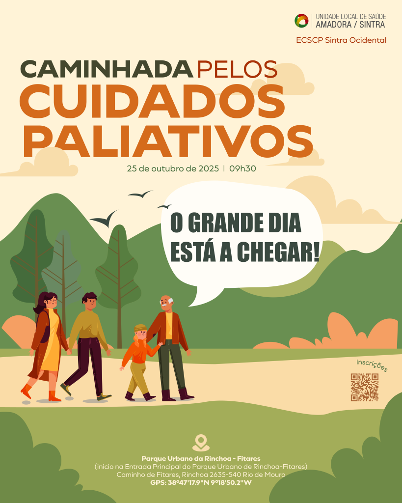 É já amanhã (sábado) a Caminhada pelos Cuidados Paliativos! A iniciativa é organizada pela Equipa de Suporte de Cuidados Paliativos Sintra Ocidental da Unidade Local de Saúde de Amadora/Sintra e tem início às 9h30, no Parque Urbano da Rinchoa Fitares.