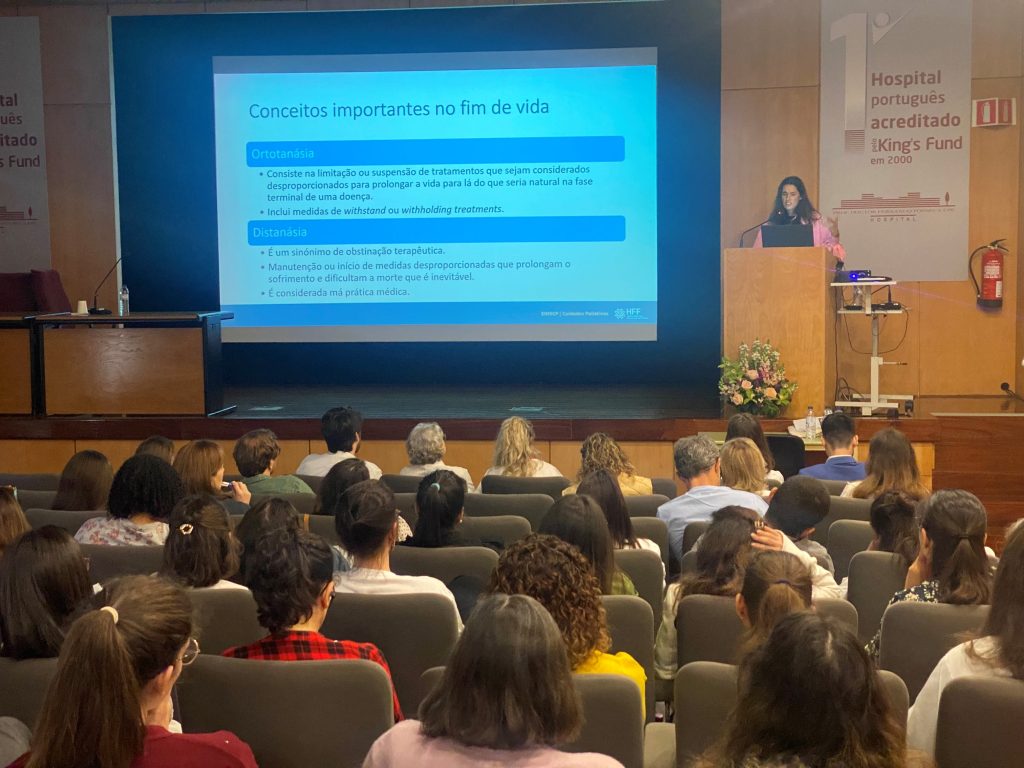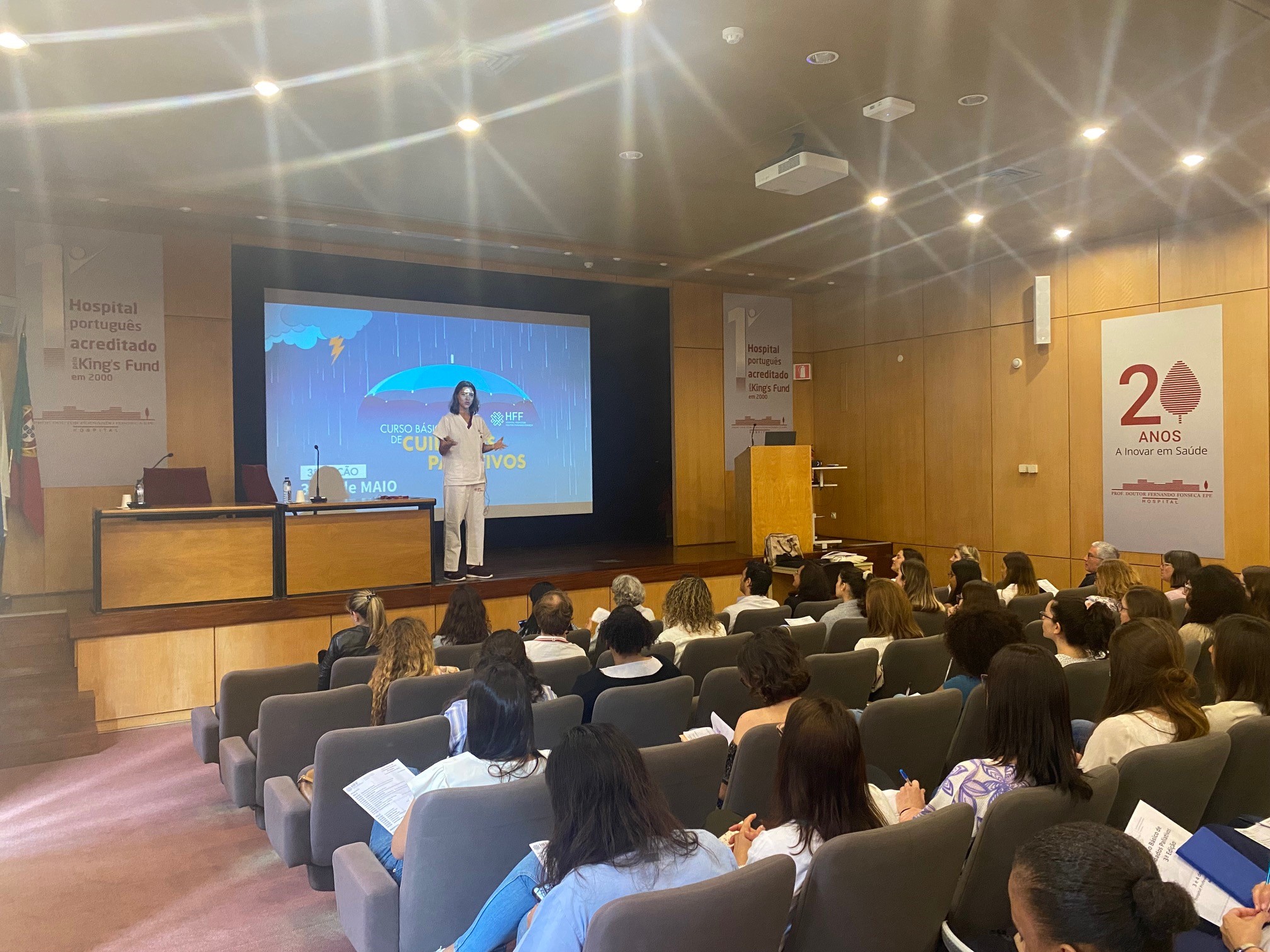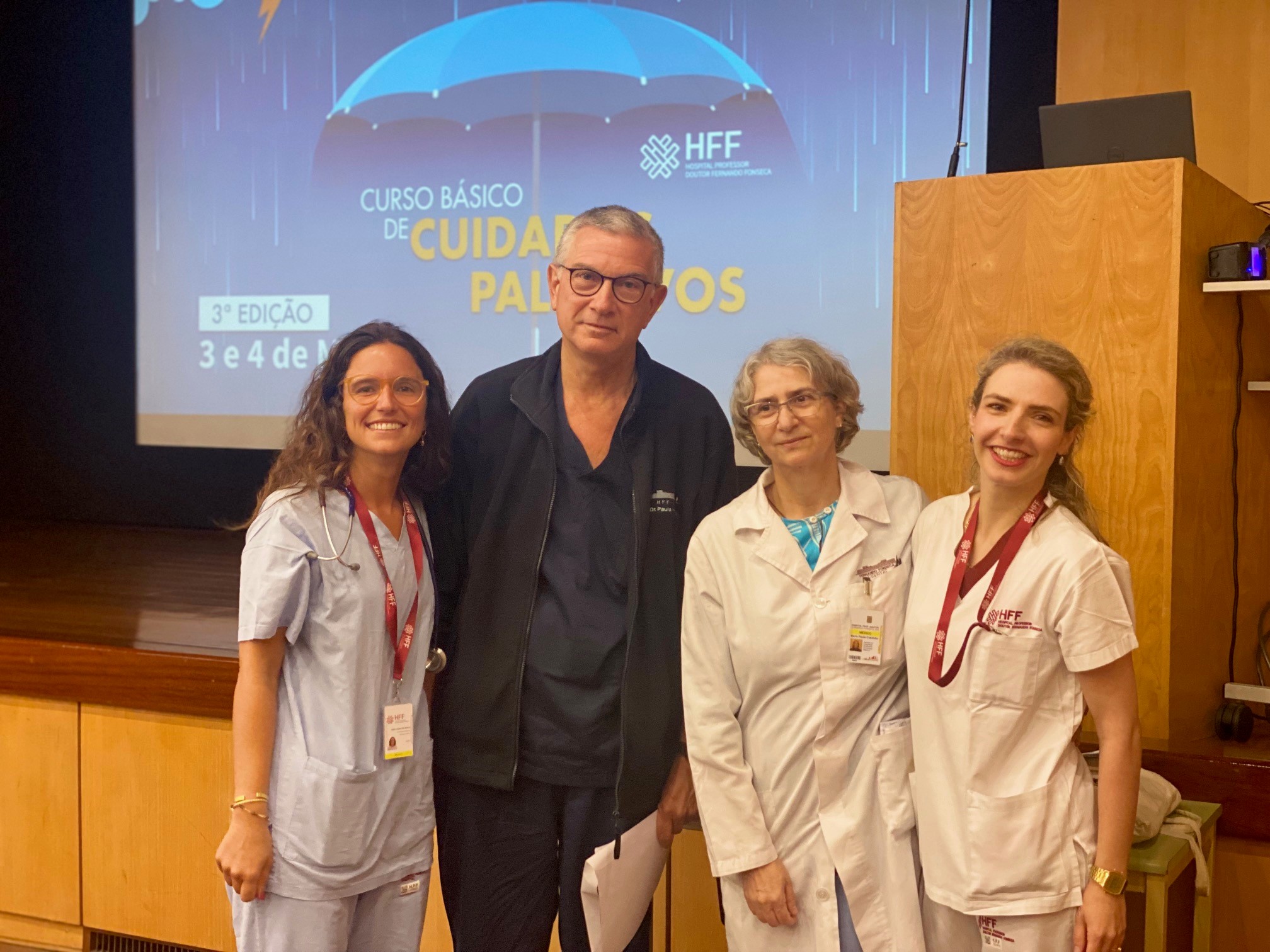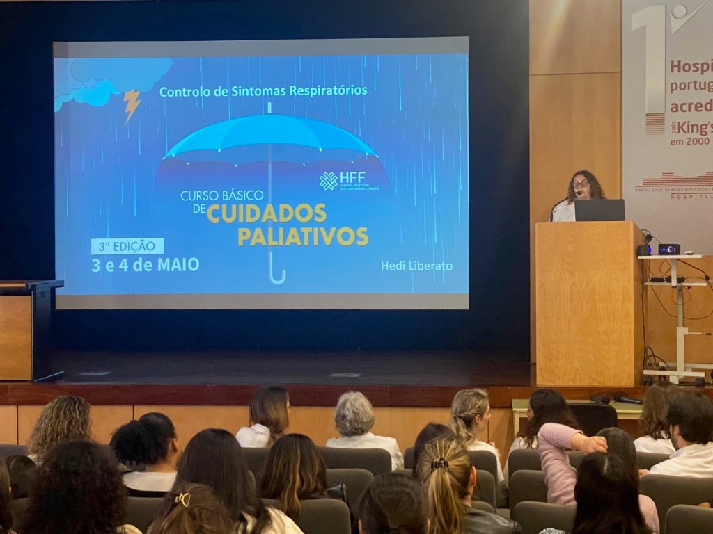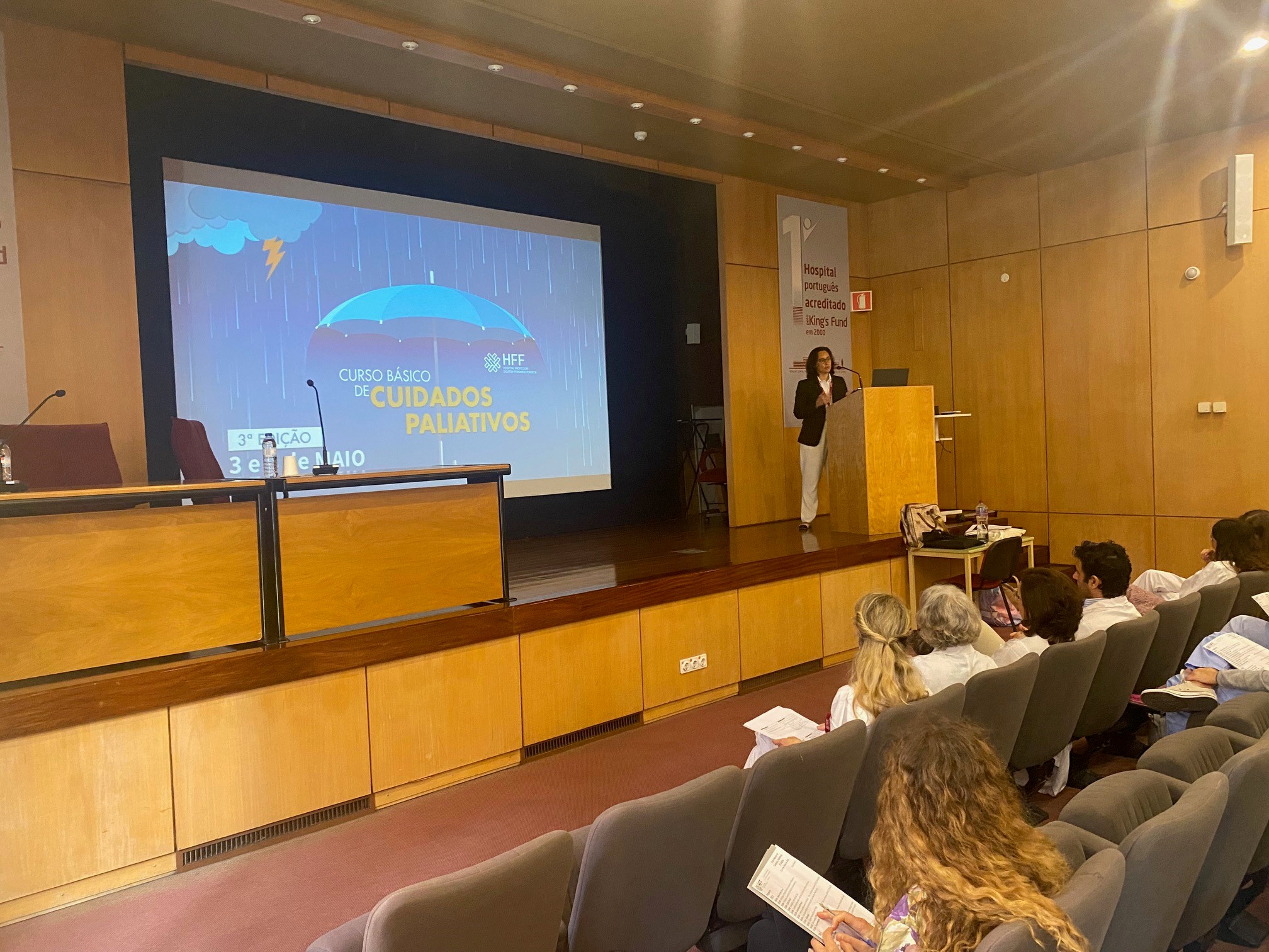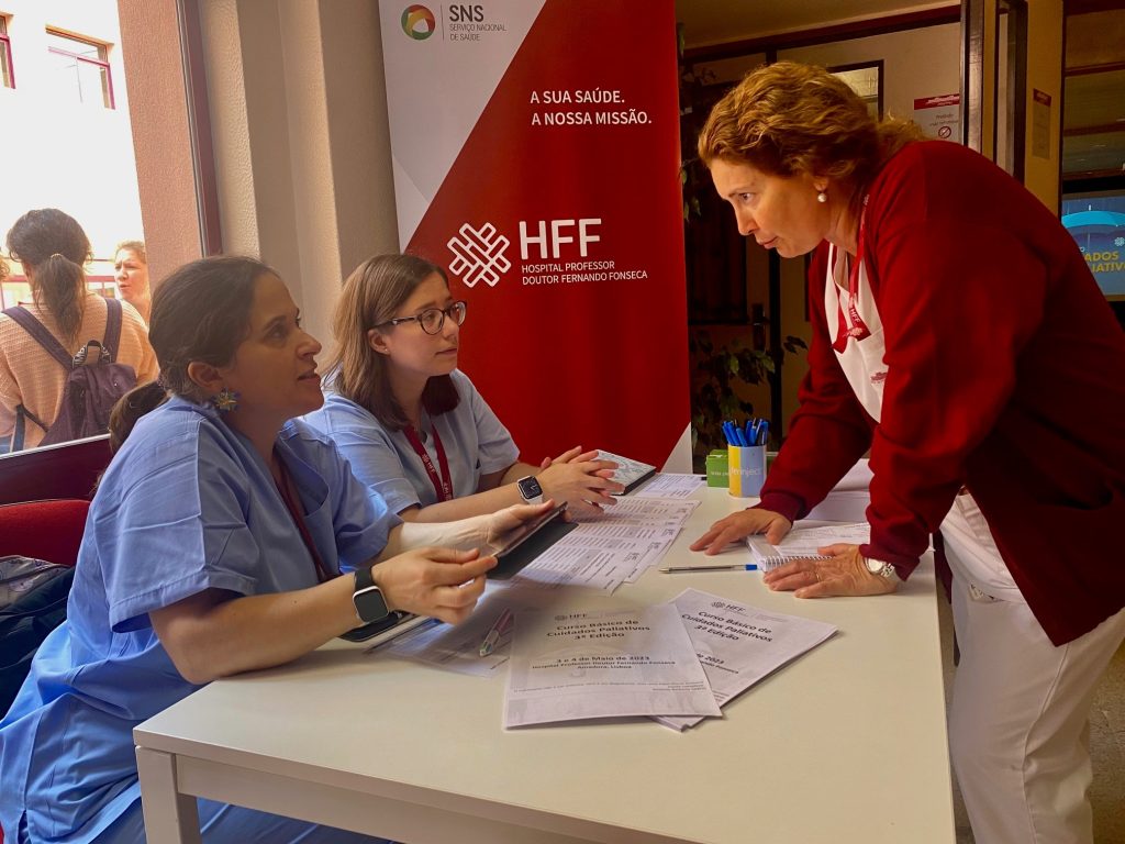 Esta quarta e quinta-feira, dias 3 e 4 maio, realizou-se no Hospital Professor Doutor Fernando Fonseca (HFF), o 3º Curso Básico de Cuidados Paliativos organizado pela Equipa Intra-Hospitalar de Suporte em Cuidados Paliativos (EIHSCP) do HFF. Este curso, que contou com lotação esgotada, foi dirigido a profissionais de saúde e alunos/as de licenciaturas/mestrados em ciências da saúde.