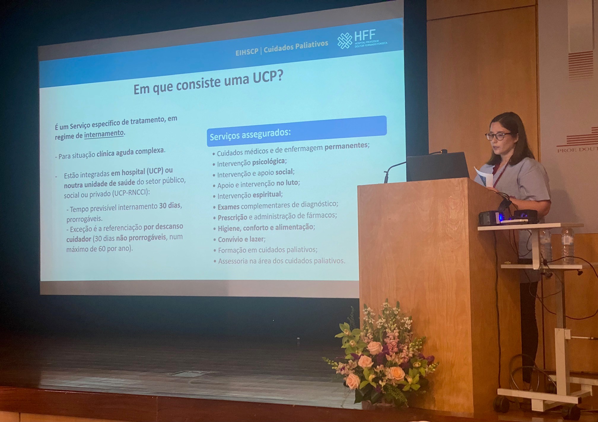 “A ideia que hoje temos dos cuidados paliativos é, felizmente, muito diferente daquela que tínhamos há uns anos. A abordagem atual centra-se em questões que vão muito para lá do fim da vida, embora esta seja uma temática que assume também relevância. A realidade atual dos cuidados paliativos proporciona uma abordagem holística e multidisciplinar aos doentes. E fá-lo sem esquecer as famílias e cuidadores, centrando todo este universo no conforto dos doentes. Esta abrangência e multidisciplinaridade está aliás bem patente no programa deste curso”, disse Joana Chêdas, Presidente do Conselho de Administração do HFF, à margem da cerimónia de abertura do respetivo curso. Que terminou a sua intervenção agradecendo à Comissão Organizadora do Curso, “todo o empenho que colocaram nesta iniciativa, a qual trará grande benefício ao HFF, mas também a outras Instituições”.