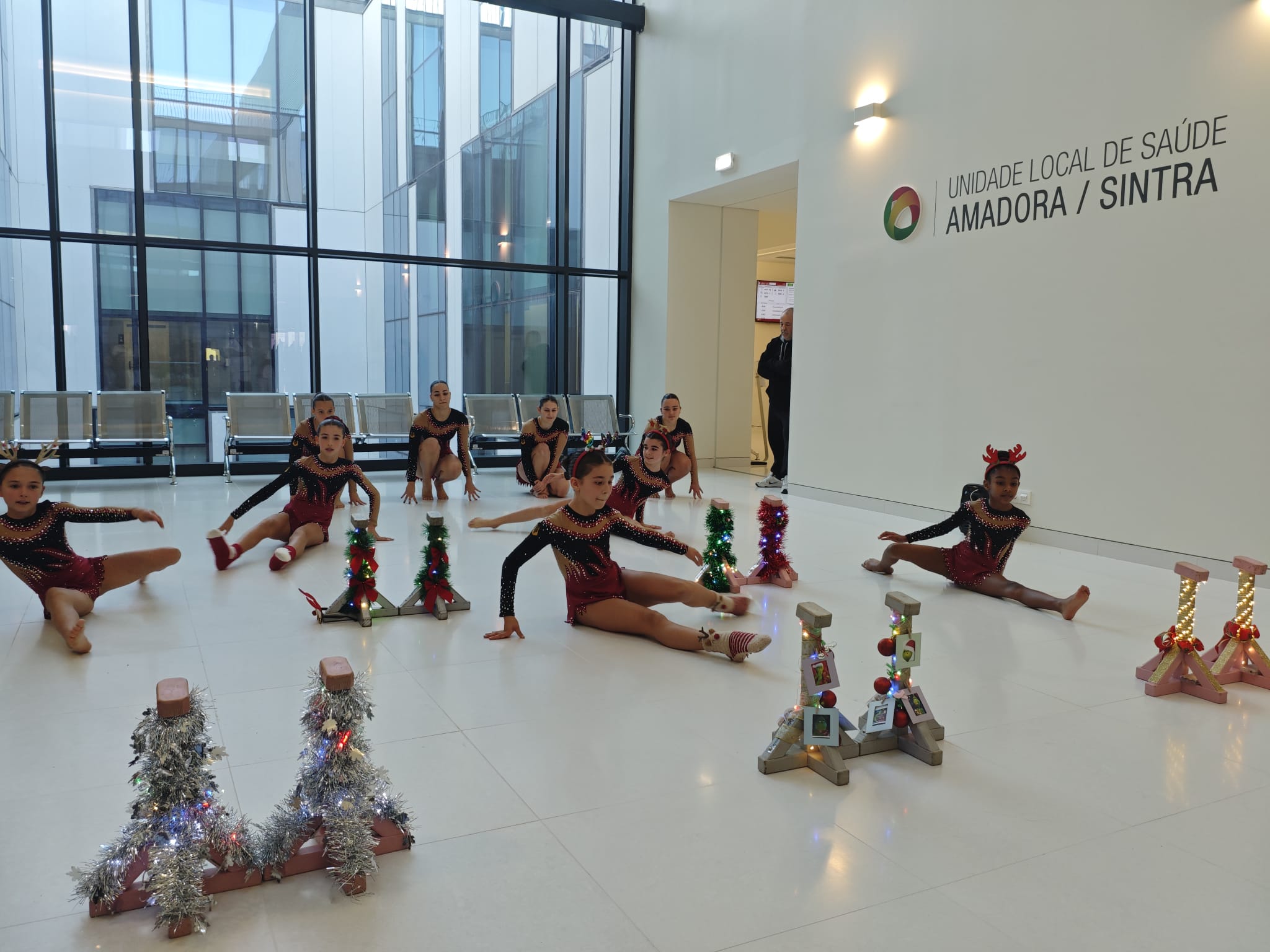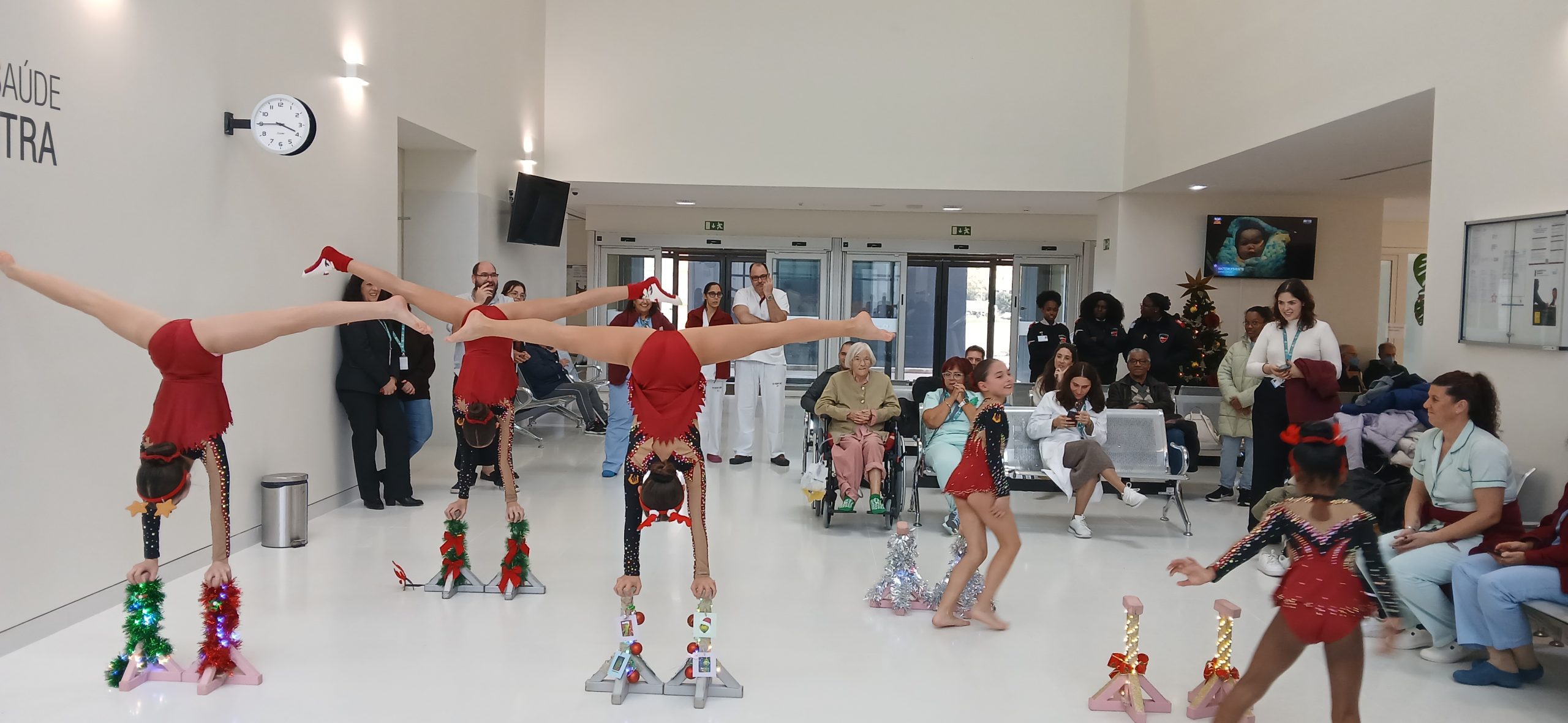 As atletas de ginástica acrobática da Tuna Operária de Sintra protagonizaram uma atuação muito especial no Hospital de Sintra, da Unidade Local de Saúde de Amadora/Sintra, integrada nas celebrações da quadra natalícia. Num hospital que vive o seu primeiro Natal, a abertura à comunidade, à arte e ao afeto reforça a ideia de que cuidar vai muito além da medicina.