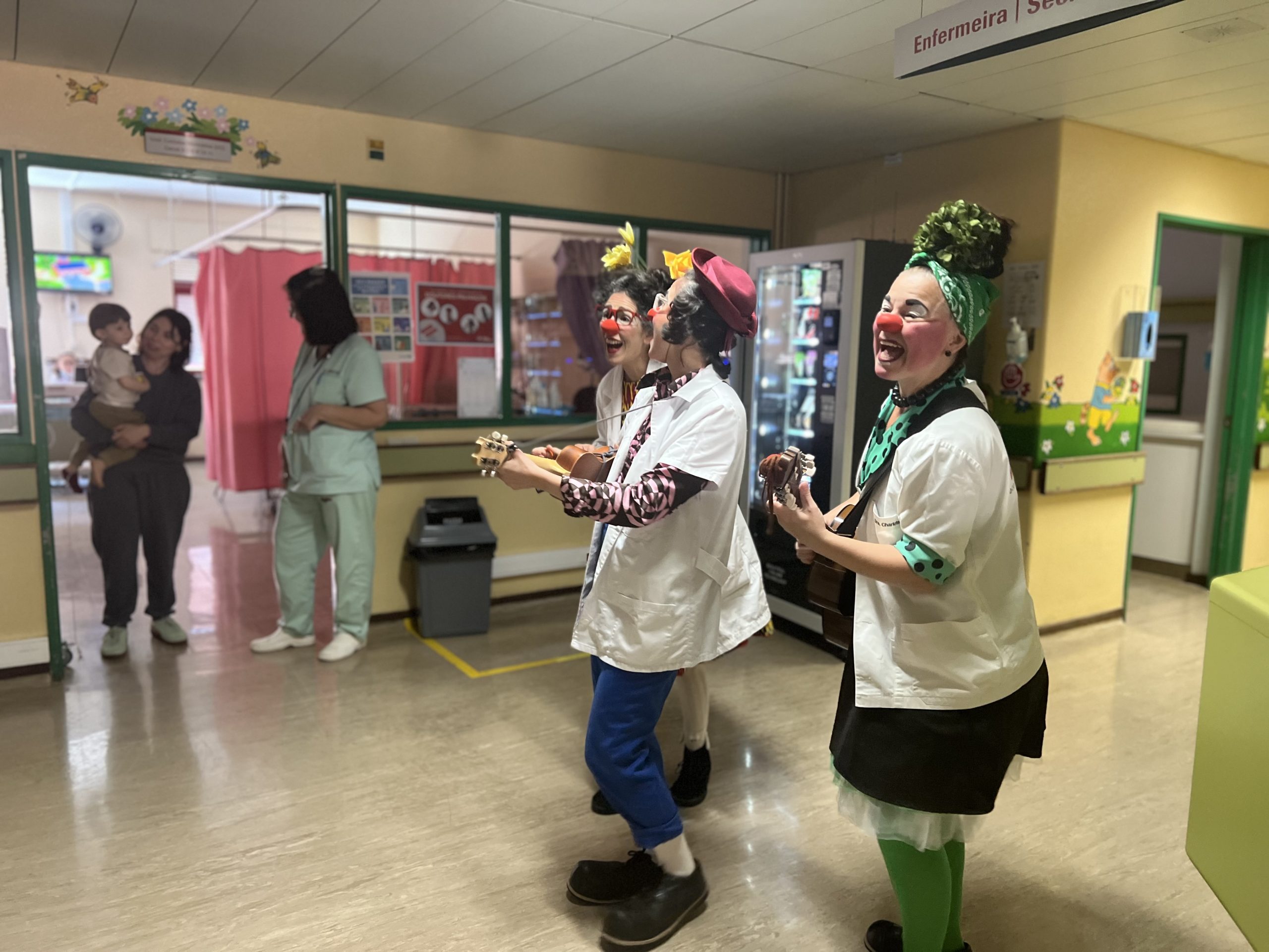 A Dra. Socorro, a Dra. Charlote e a Super Dra. Ginjação, da Operação Nariz Vermelho, presentearam ainda as crianças do serviço de internamento de pediatria com um cortejo musical pelos corredores do hospital, distribuindo muitos sorrisos, música e alegria.