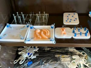 A sala de treino e simulação cirúrgica do HFF está equipada com diversos equipamento e material necessário para o treino de diversos tipos de cirurgia e outros procedimentos, como por exemplo suturas. A utilização de recursos tecnológicos, como o vídeo, é também uma realidade, permitindo a realização de registos dos treinos para posterior análise.