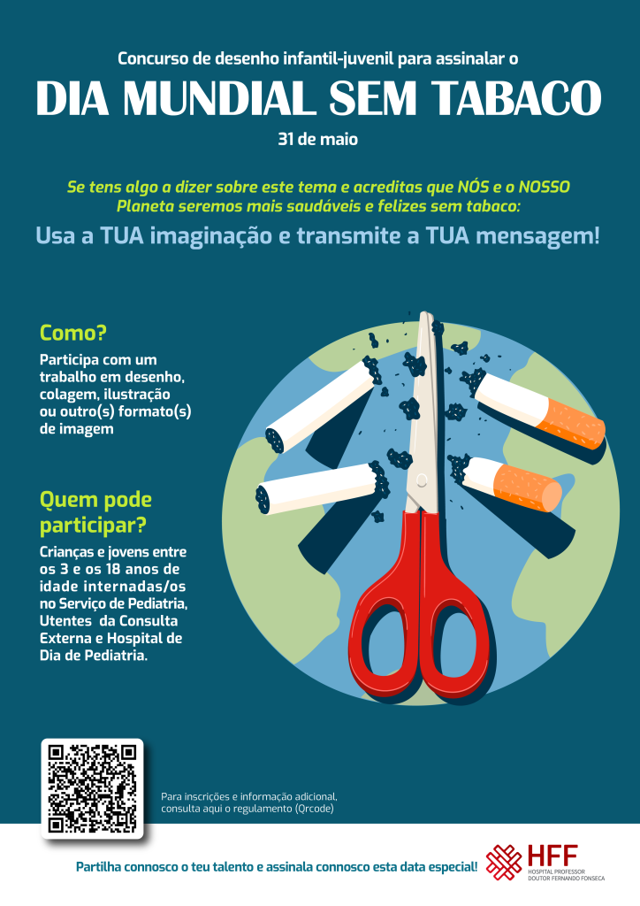 É já no próximo dia 31 de maio que se assinala o Dia Mundial Sem Tabaco. De forma a assinalar esta data o Hospital Professor Doutor Fernando Fonseca (HFF) tem um desafio para os/ seus/suas pequenos/as utentes: um concurso de desenho infantil-juvenil para assinalar o Dia Mundial Sem Tabaco.