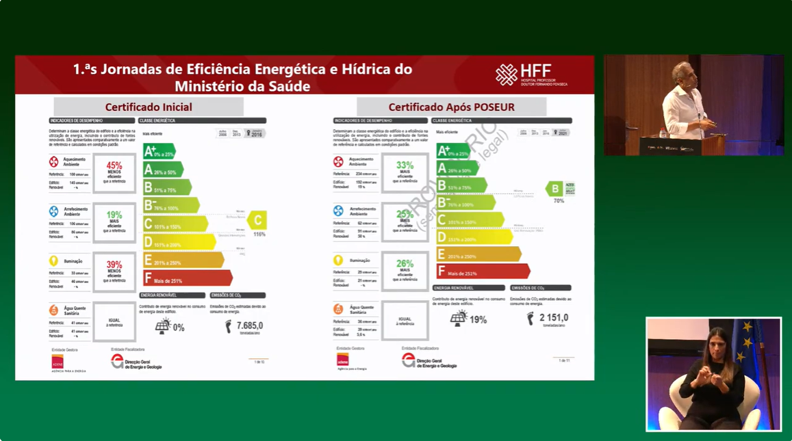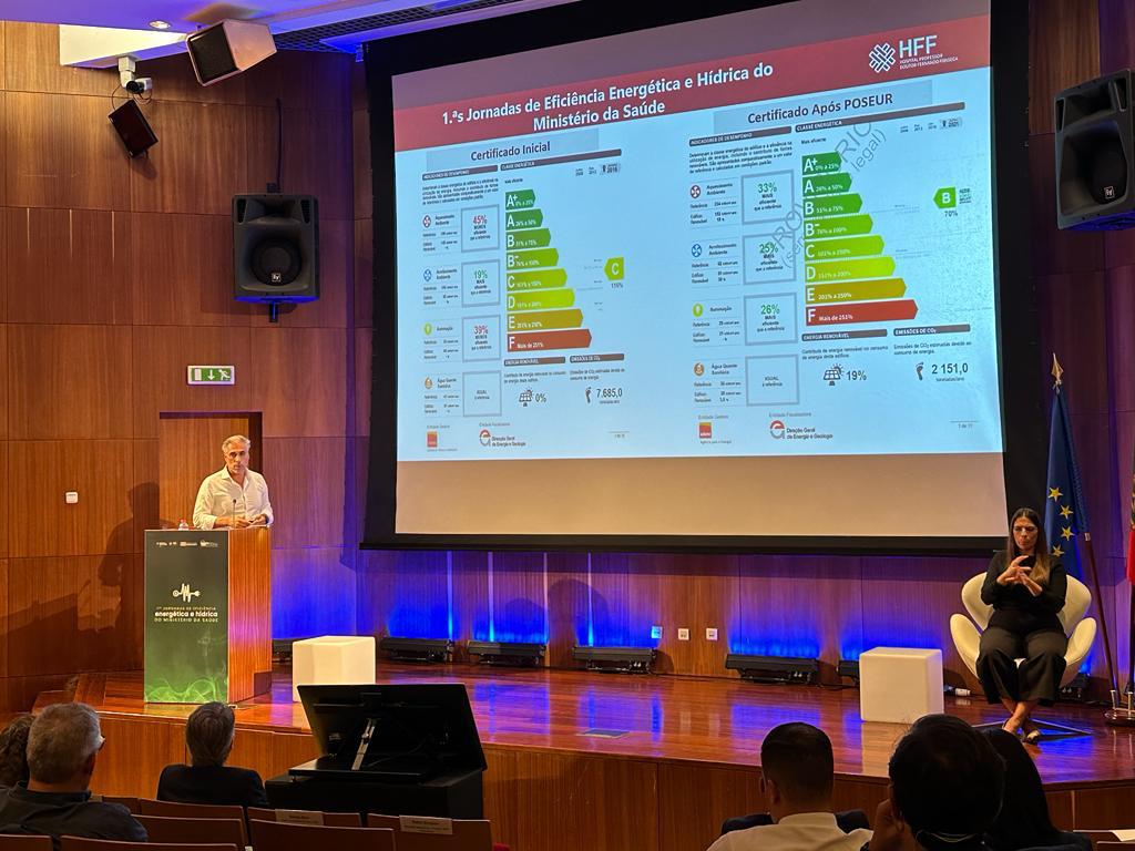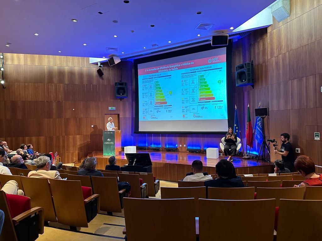 Foram partilhadas informações e dados concretos sobre um dos maiores investimentos do HFF em sustentabilidade ambiental. Inicialmente, o hospital estava classificado na Categoria C em termos de eficiência energética. No entanto, por meio da obtenção de um financiamento bem-sucedido do POSEUR (Programa Operacional Sustentabilidade e Eficiência no Uso de Recursos) e um investimento superior a sete milhões de euros em diversos projetos de melhoria da sustentabilidade ambiental, o HFF ambicionou subir para a Categoria B em eficiência energética. No final deste programa operacional, o hospital superou significativamente essa meta, alcançando com sucesso a Categoria B resultando em números impressionantes de transformação, também apresentados durante este evento.