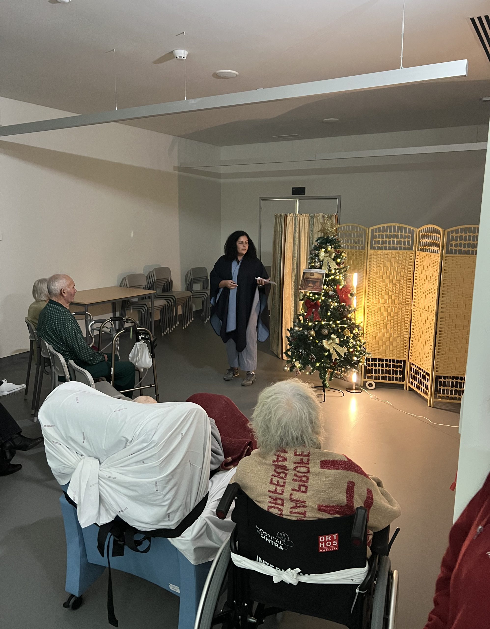 Os doentes e profissionais do internamento do Hospital de Sintra, da ULS Amadora/Sintra, assistiram à antestreia da peça de teatro radiofónico “Consoada na Aldeia”, protagonizada pelo Grupo de Teatro Radiofónico — um projeto recente do Espaço Capaz, centro de promoção do envelhecimento ativo, saudável e inclusivo da Santa Casa da Misericórdia de Sintra.