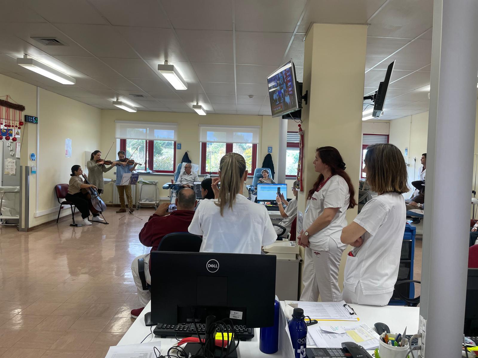 Recentemente, a Lisboa Duo, um grupo constituído pela violinista Clara Gomes e pela violoncelista Joana Correia, esteve no Hospital de Dia Polivalente e na Medicina IV, a “humanizar” a vida de doentes e colaboradores.