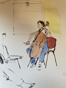 O átrio do Hospital também foi palco de ações de música e pintura, pelos Urban Sketchers.