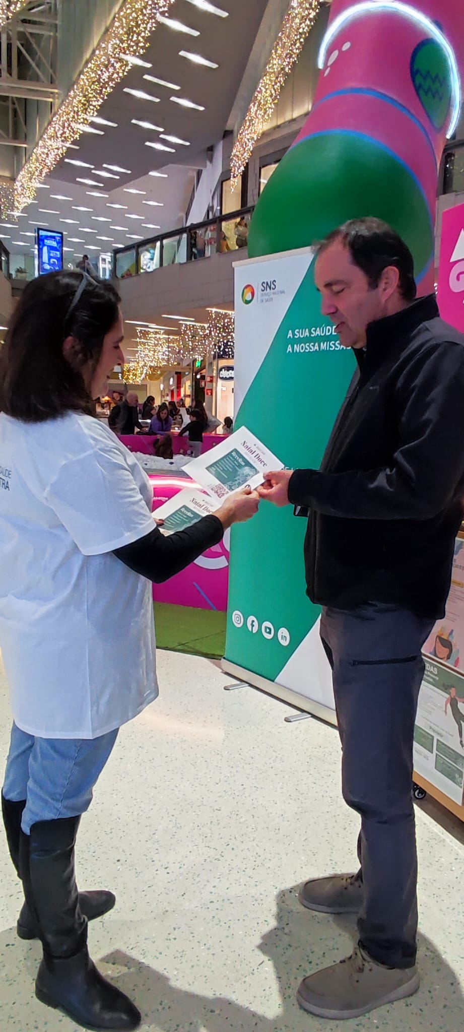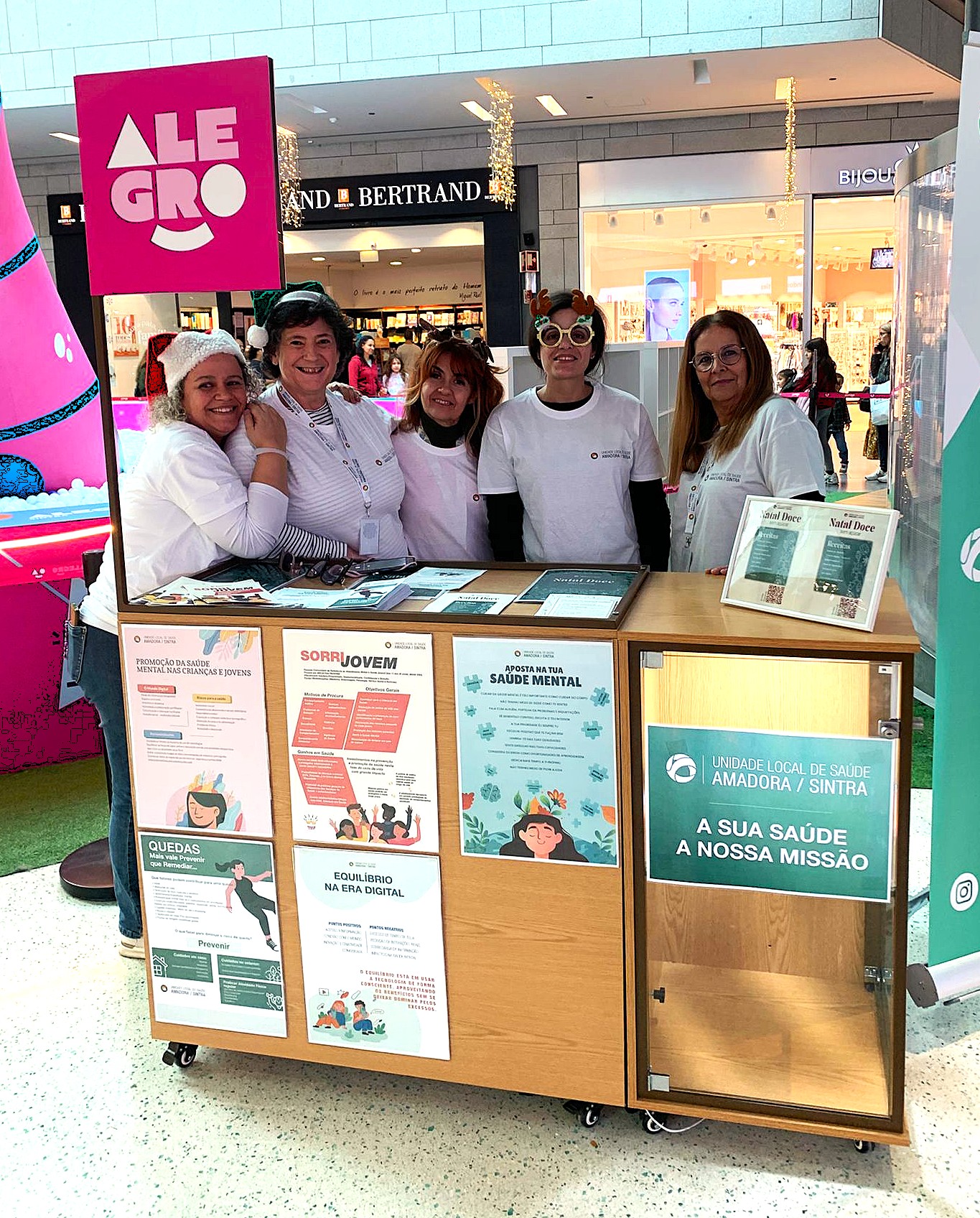 Num dia de muita azáfama de compras natalícias por crianças, jovens e adultos, a Comunidade mostrou bastante disponibilidade para escutar os conselhos e esclarecimentos sobre temas como: Prevenção de Quedas, Nutrição Saudável nesta época festiva, Equilíbrio na Era Digital, Promoção da Saúde Mental nas Crianças e Jovens e Espaço “Sorri Jovem”.