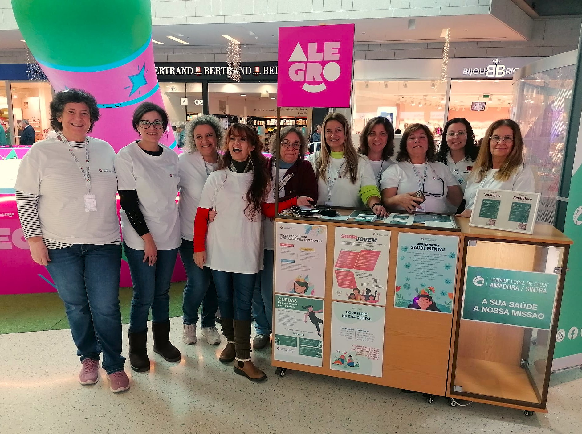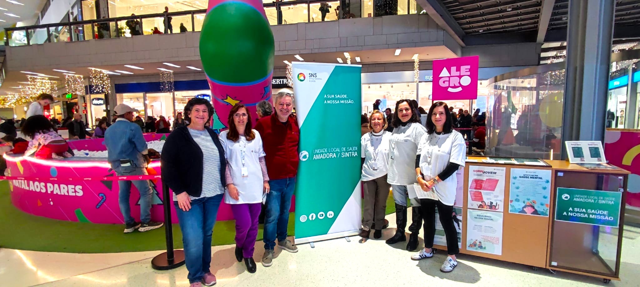 Dando continuidade à parceria entre o Centro Comercial Alegro Sintra e a ULS Amadora/ Sintra, decorreu, naquele centro comercial do concelho de Sintra, no dia 15 mais uma Ação de Literacia em Saúde promovida por uma Equipa de Enfermeiros, Fisioterapeutas e Nutricionista dos Cuidados de Saúde Primários da ULS Amadora/Sintra.