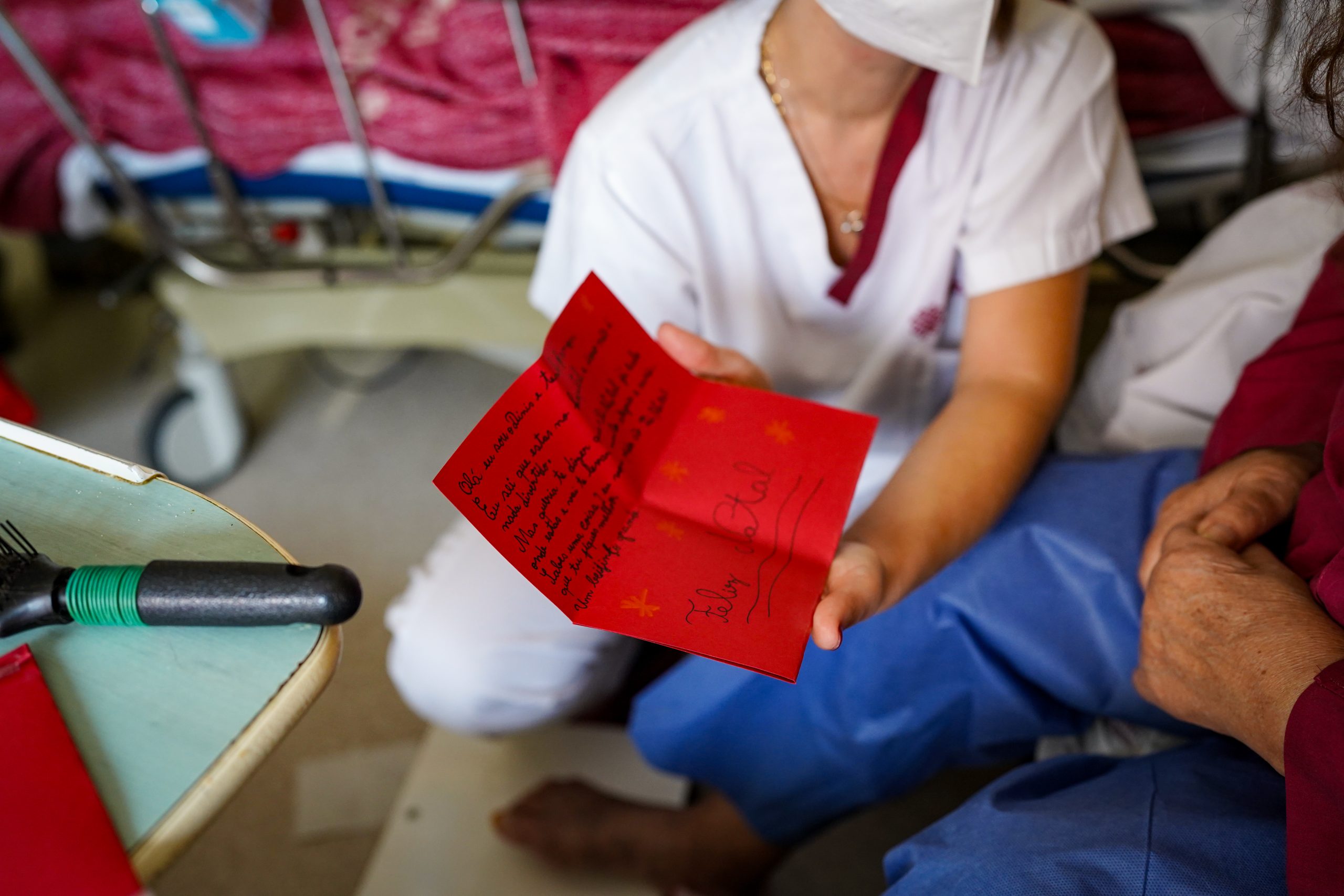 Num gesto simbólico e solidário, elementos da Junta de Freguesia, entre os quais o vogal do executivo Tiago Barbosa, assumiram o papel de verdadeiros Pais Natal, entregando pessoalmente os postais e proporcionando momentos de emoção, sorrisos e proximidade humana aos utentes.