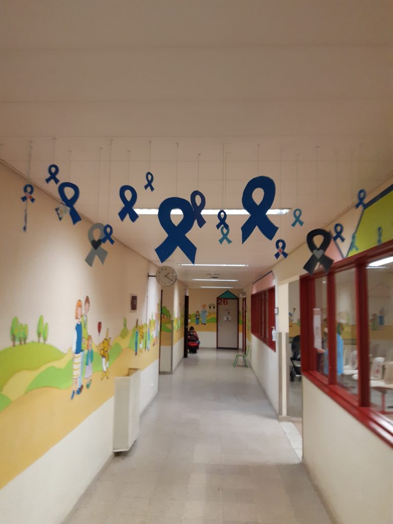 – também nas salas de espera, apareceram os já reconhecidos “laços azuis” para que os profissionais e as famílias nunca se esqueçam desta problemática;