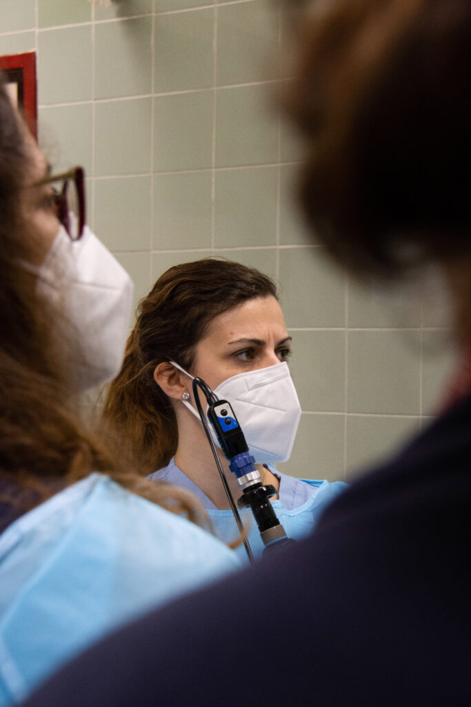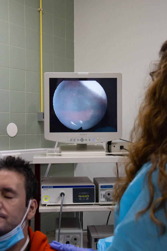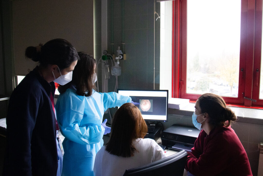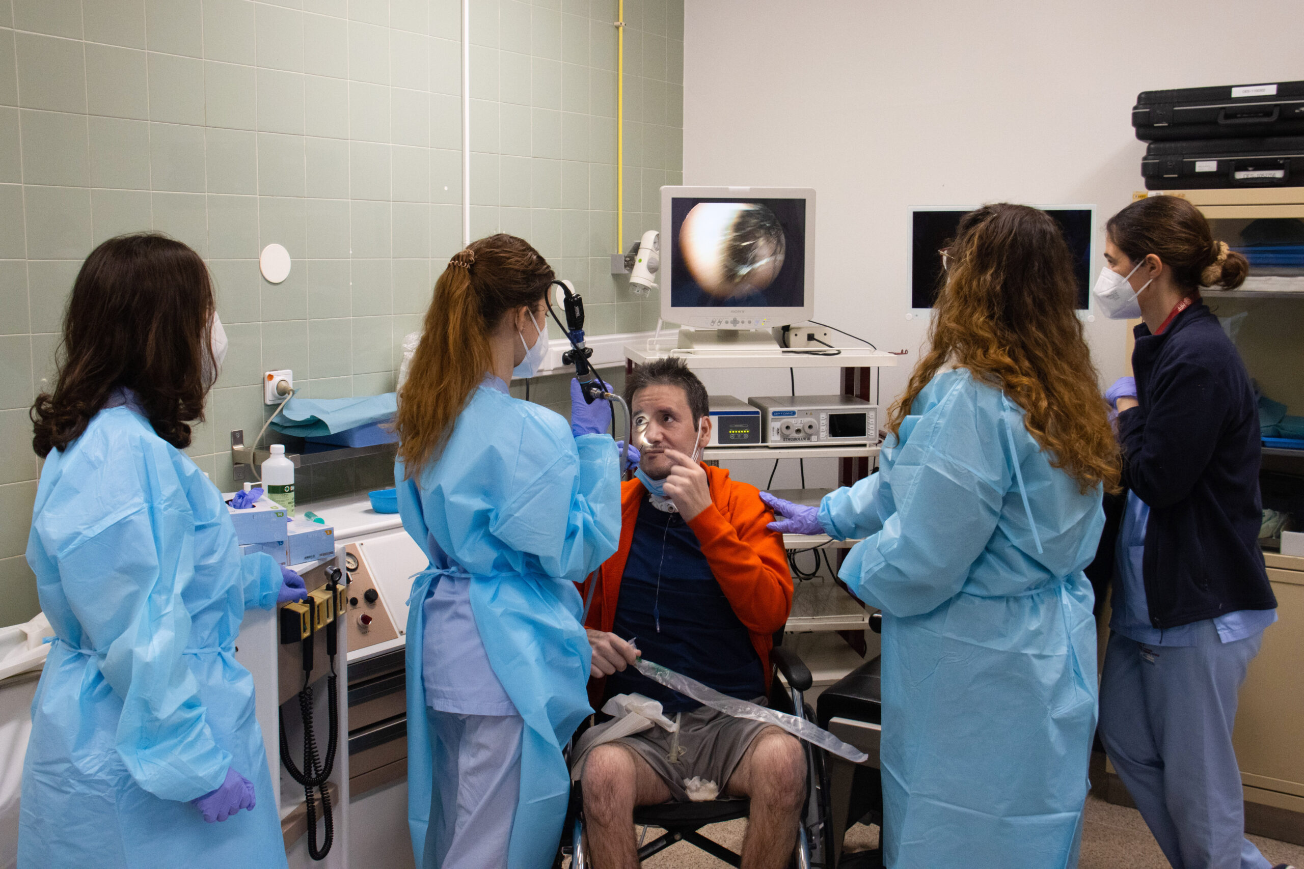 A videoendoscopia da deglutição – VED (representada nestas imagens) é um exemplo de método de avaliação dos/as doentes com disfagia orofaríngea.