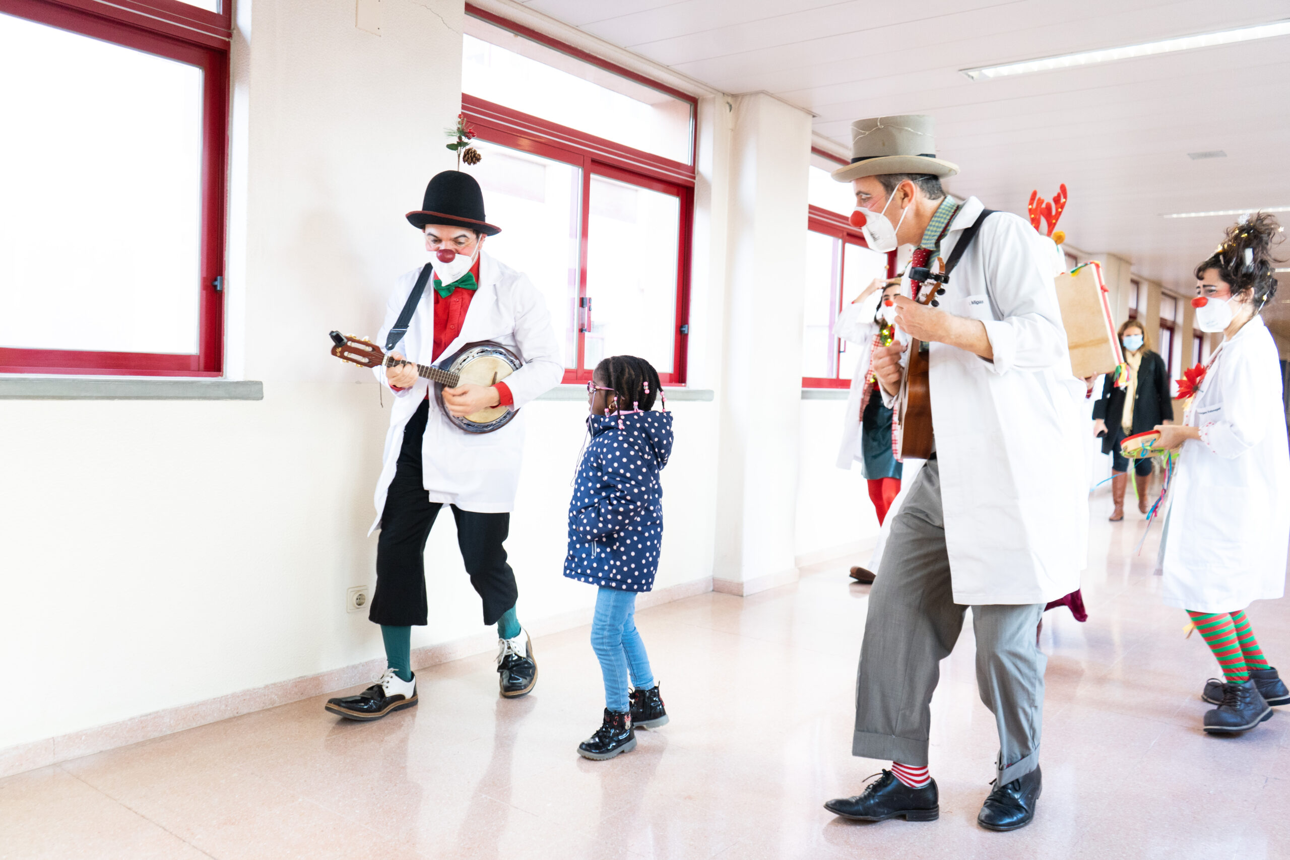 O Serviço de Pediatria do Hospital Professor Doutor Fernando Fonseca foi hoje palco de um concerto de mão cheia, não fossem cinco belíssimos cantores as/os palhaças/os que hoje vieram animar os nossos corredores.