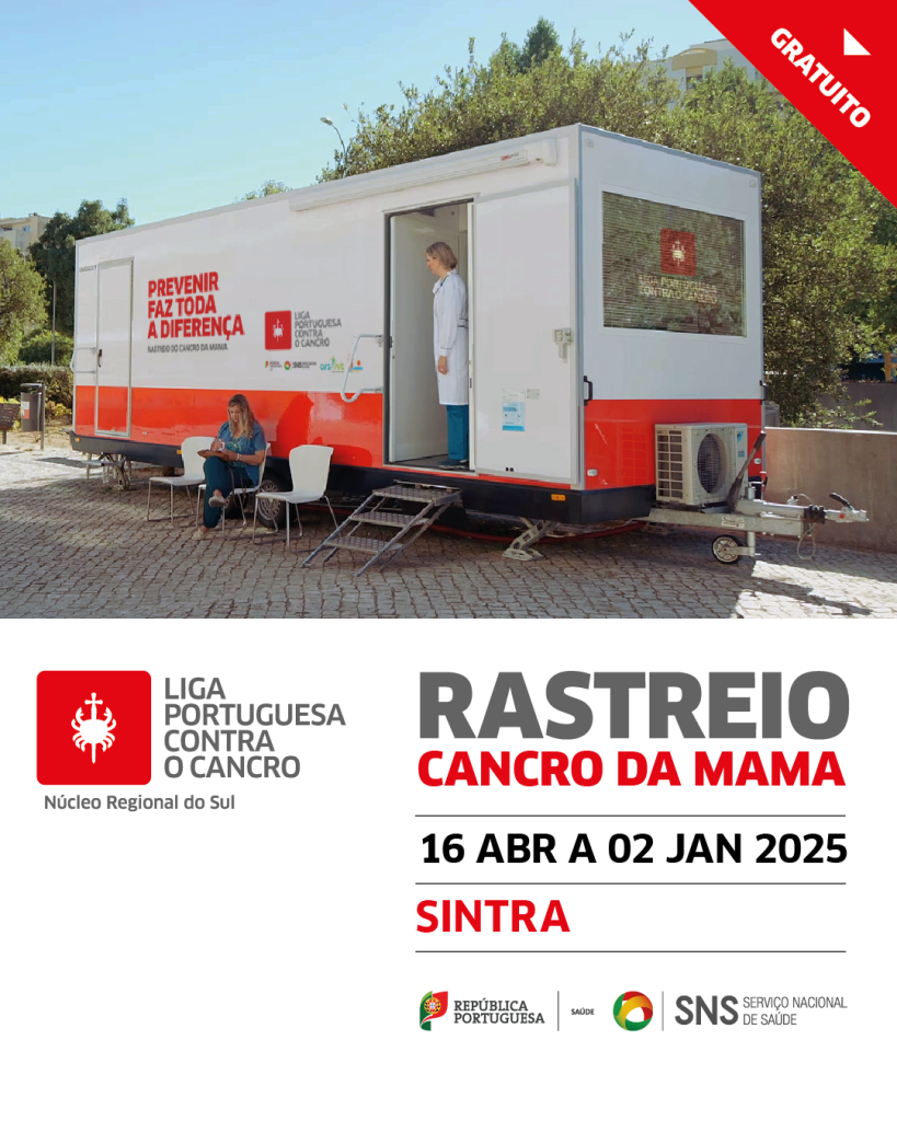 A Liga Portuguesa Contra o Cancro – Núcleo Regional do Sul (LPCC-NRS), em parceria com o Serviço Nacional de Saúde (SNS) anuncia a continuidade do Rastreio do Cancro de Mama, no Município de Sintra.