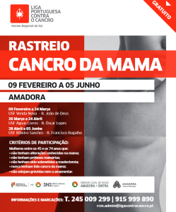 O Rastreio do Cancro da Mama já está a decorrer junto à Unidade de Saúde Familiar (USF) Amato Lusitano e Unidade de Saúde Familiar (USF) Venda Nova, permitindo a realização de mamografias gratuitas na Unidade Móvel da @ligacontracancro a mulheres com idades entre os 45 e os 74 anos.