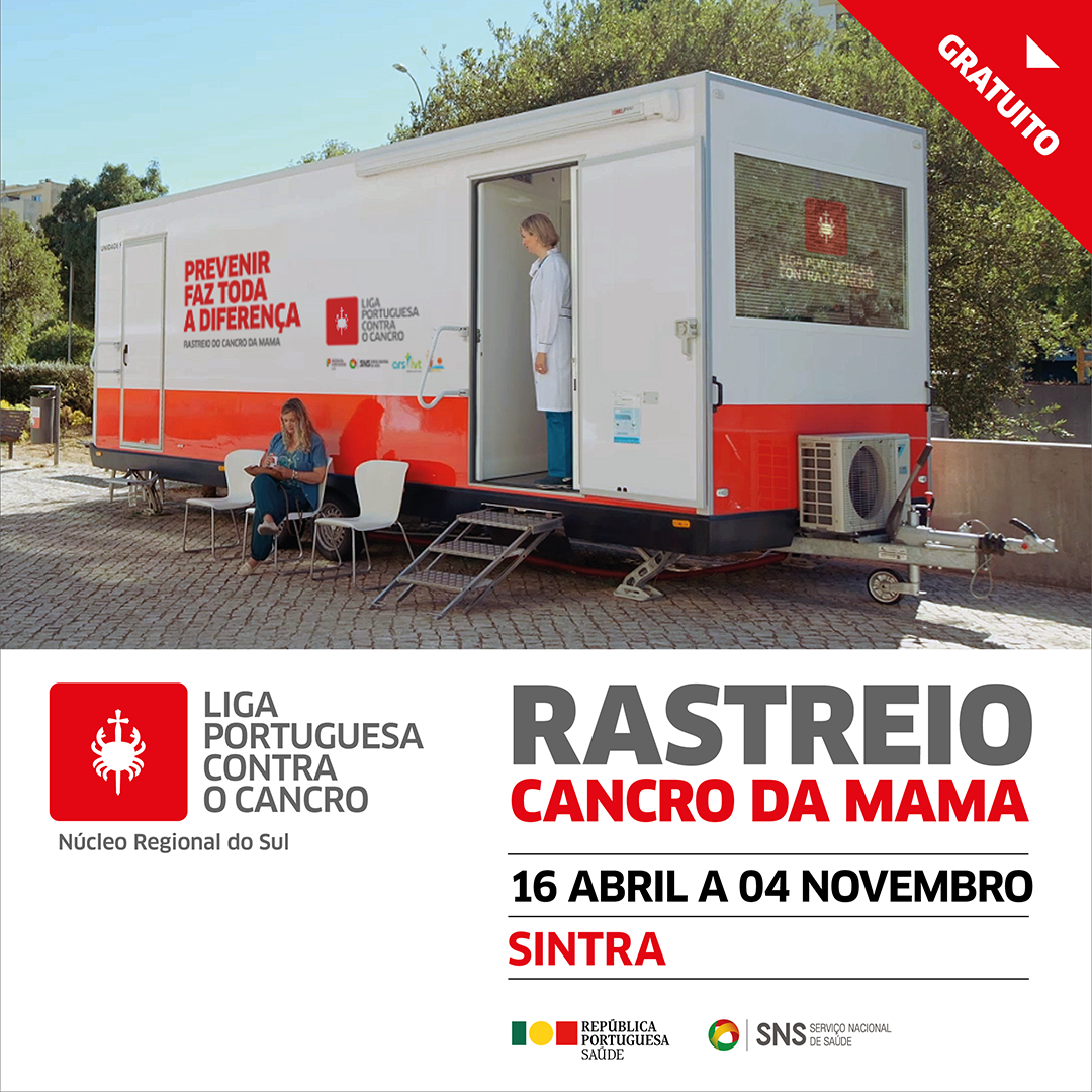 A Liga Portuguesa Contra o Cancro – Núcleo Regional do Sul (LPCC-NRS), em parceria com o Serviço Nacional de Saúde (SNS) anuncia a continuidade do Rastreio do Cancro de Mama, no Município de Sintra.