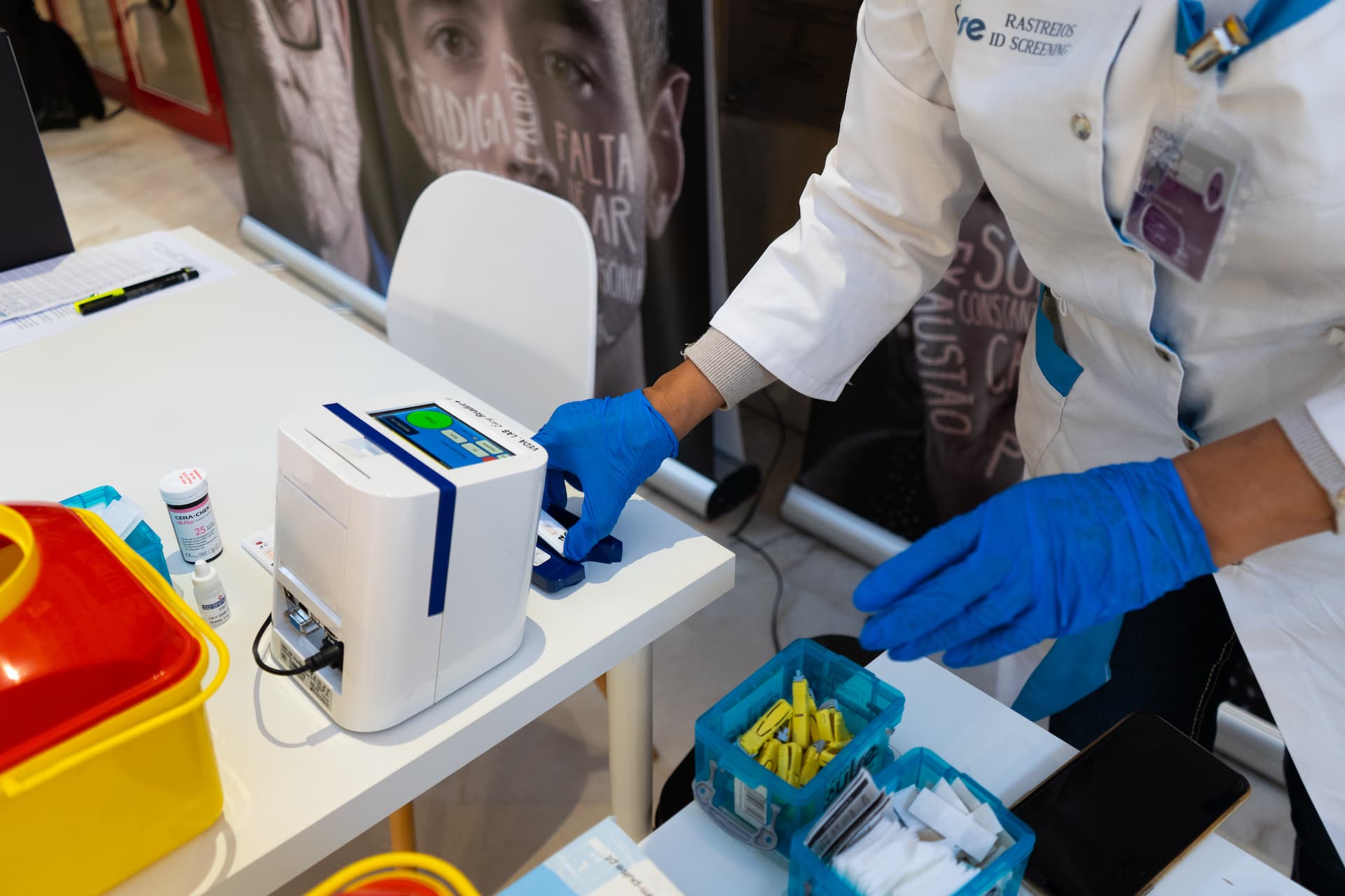 Diana Sousa Mendes, diretora do Serviço de Sangue e Medicina Transfusional (SSMT) do HFF, confessa que o número de profissionais que aderiu foi uma surpresa: “Tinha pensado muito nos/as visitantes, nos/as familiares e nos/as acompanhantes, mas não pensei que tantos/as profissionais aderissem. Isso é fantástico. Temos de tratar de nós, já que aqui estamos todos os dias a tratar dos outros. Muitas vezes, exatamente por trabalharmos no hospital, descuramos a nossa própria saúde, e fico feliz por oferecermos este rastreio.”