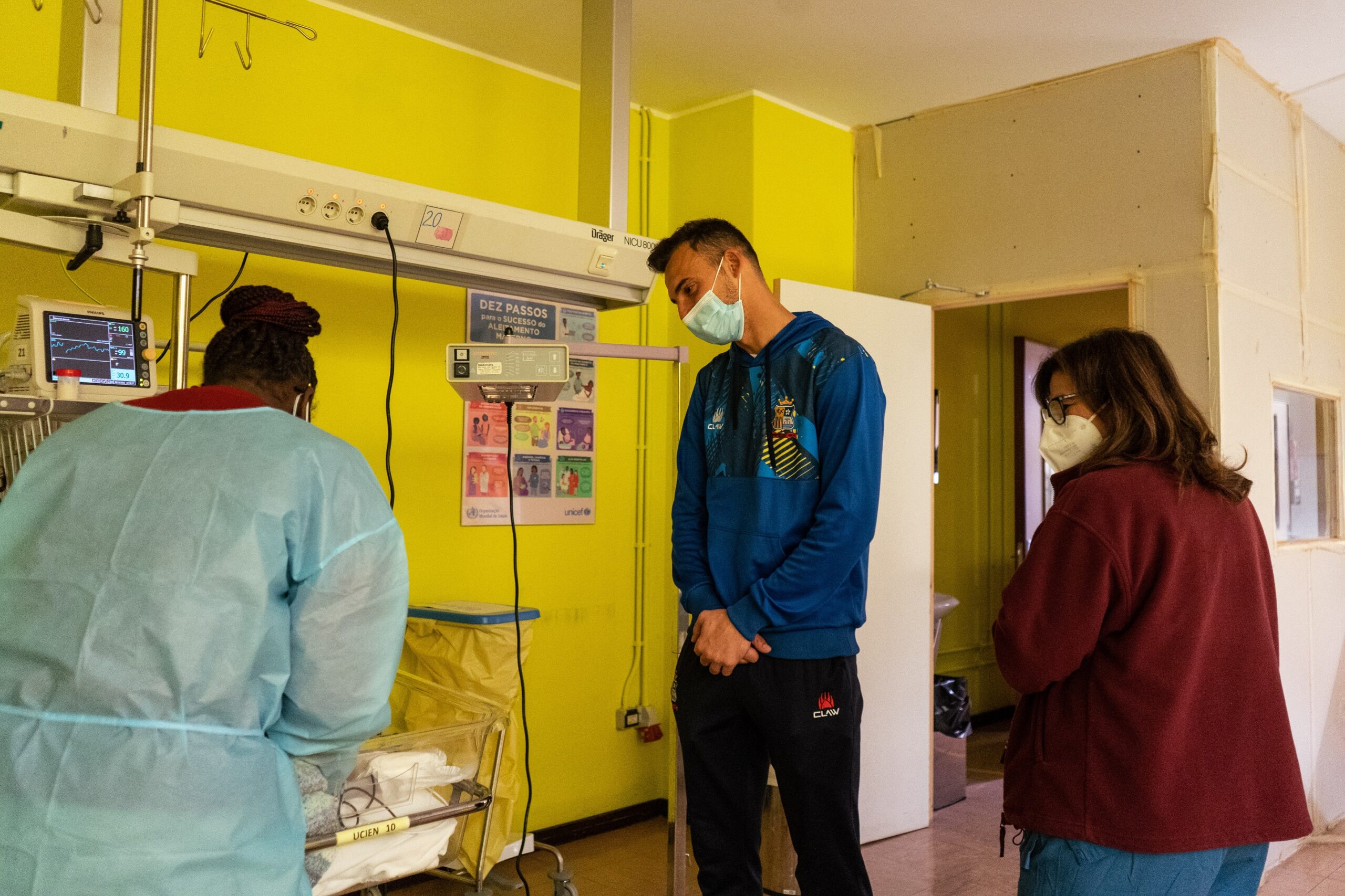 No Serviço de Neonatologia, todos os dias se luta pelo jogo mais importante de vencer, a vida. “Quando o jogo começa mais cedo” foi a frase que acompanhou as assinaturas de toda a equipa na t-shirt oferecida ao serviço e o mote que acompanhou a equipa durante a visita. Os jogadores falaram com os pais, com os profissionais e também com um jovem de 18 anos que “adora jogar à bola”, dando-lhes um reconforto extra e força para continuar.