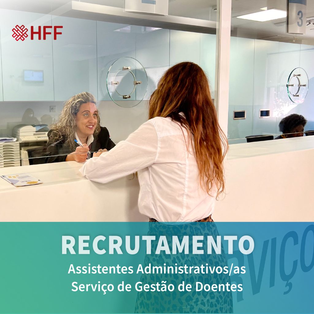 O Hospital Professor Doutor Fernando Fonseca (HFF) está a recrutar Assistente Administrativo/a para o Serviço de Gestão de Doentes. As candidaturas decorrem entre os dias 11/04/2023 a 15/04/2023 e devem ser formalizadas através do seguinte email: recrutamento_adm@hff.min-saude.pt Saiba mais sobre este processo de contratação através do site do HFF: