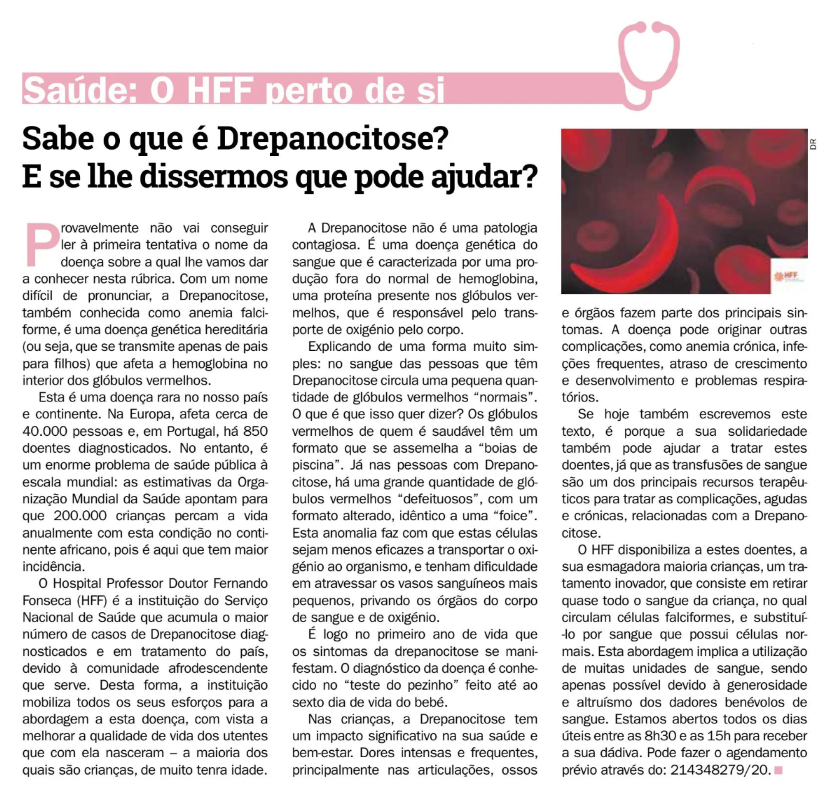 O Hospital Professor Doutor Fernando Fonseca (HFF) é a instituição do Serviço Nacional de Saúde que acumula o maior número de casos de Drepanocitose diagnosticados e em tratamento do país, devido à comunidade afrodescendente que serve. Desta forma, a instituição mobiliza todos os seus esforços para a abordagem a esta doença, com vista a melhorar a qualidade de vida dos utentes que com ela nasceram – a maioria dos quais são crianças.