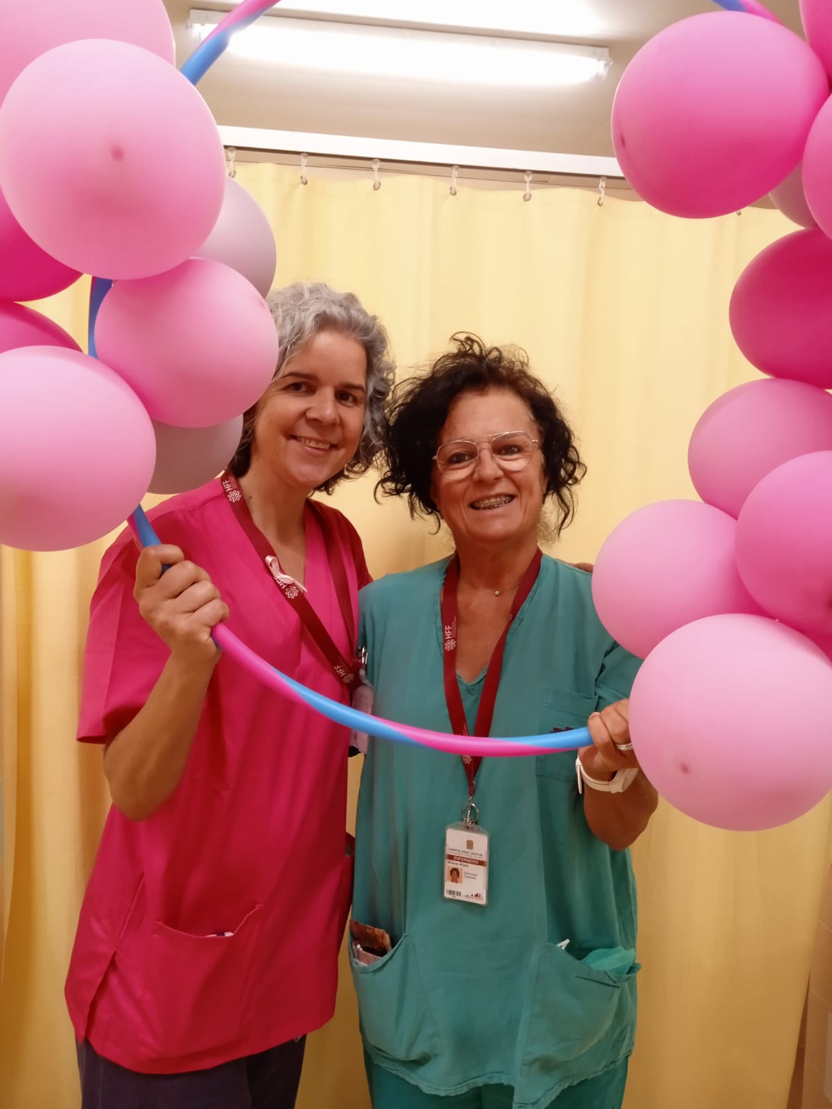 O Serviço de Medicina Física e de Reabilitação (SFMR) do Hospital Professor Doutor Fernando Fonseca (HFF) tem estado a assinalar o “Outubro Rosa” junto dos/das nossos/nossas utentes. Neste mês de outubro, a equipa multidisciplinar do SFMR dedicada à reabilitação dos/das utentes com cancro da mama adotou o cor-de-rosa , cor do movimento “Outubro Rosa”.
