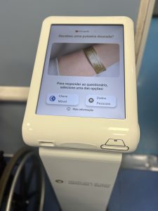 Após a Triagem de Manchester, os utentes elegíveis recebem adicionalmente uma pulseira dourada, sendo convidados a responder a um questionário clínico digital, no telemóvel ou num quiosque disponível no serviço, com um tempo médio de preenchimento entre 10 e 15 minutos. A informação recolhida é automaticamente analisada pelo sistema, originando uma nota clínica estruturada e uma proposta de plano de tratamento para validação médica. Sempre que necessário, os doentes são encaminhados diretamente para exames complementares de diagnóstico ou terapêutica, antes da primeira observação médica.