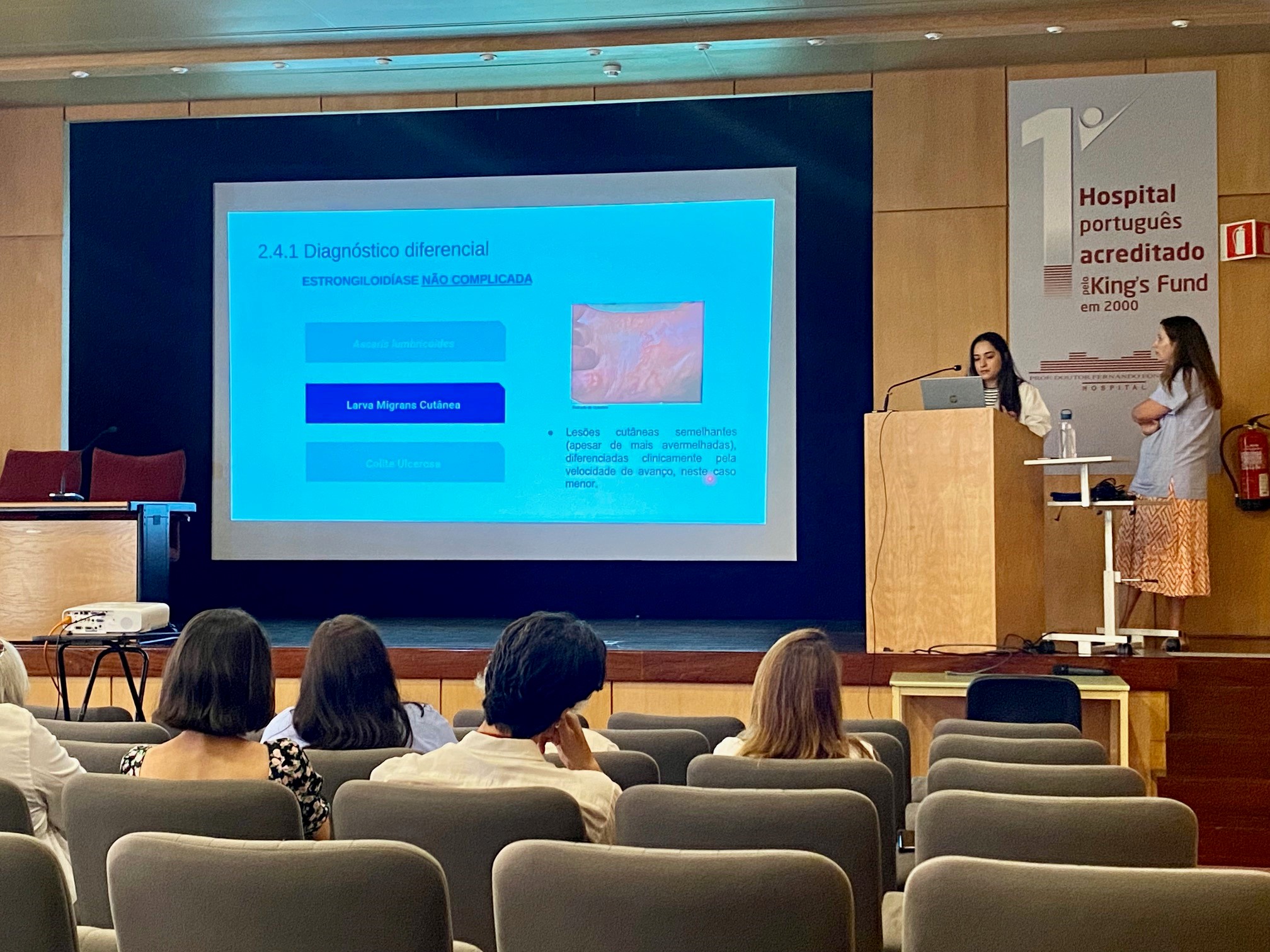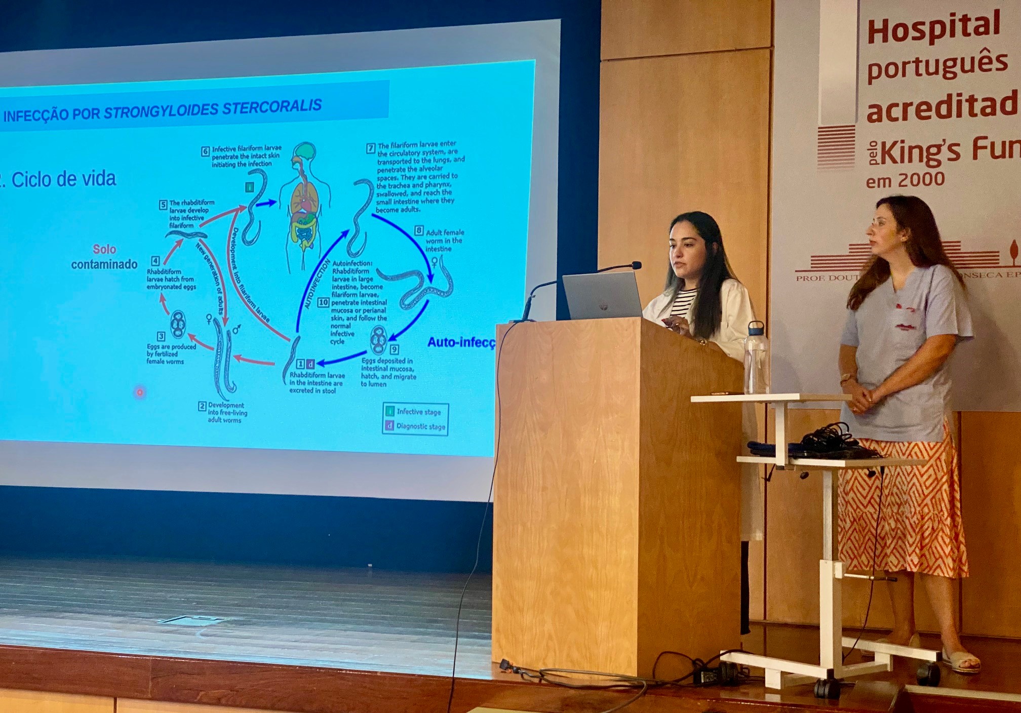 Atendendo à crescente população migrante proveniente destes países com alto risco de exposição, como é o caso da Guiné-Bissau e Sudeste Asiático e tendo em conta a diversidade populacional abrangida pela área geográfica do nosso Hospital, as duas autoras consideraram importante a realização desta sessão com o objetivo de alertar para a necessidade de rastreio da infeção por Strongyloides em doentes imunodeprimidos ou candidatos a terapêutica imunossupressora, provenientes destes mesmos países. Em todos os casos diagnosticados, a terapêutica com Ivermectina é a recomendada.