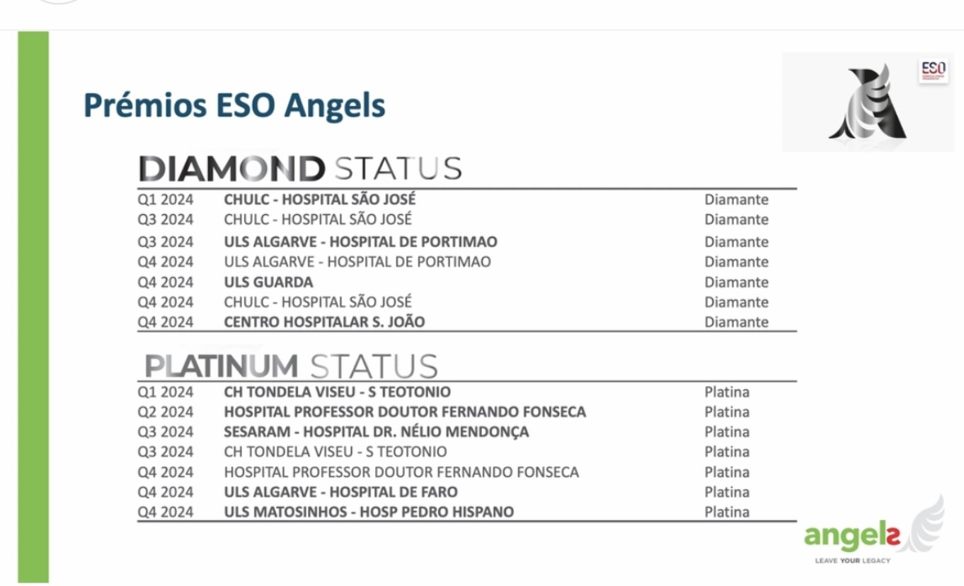 A Unidade de AVC do nosso hospital foi distinguido com os Prémios ESO Angels, que distinguem hospitais de excelência que, através da recolha e análise contínua de dados, contribuem para a melhoria dos protocolos e da qualidade dos cuidados prestados a doentes com AVC.