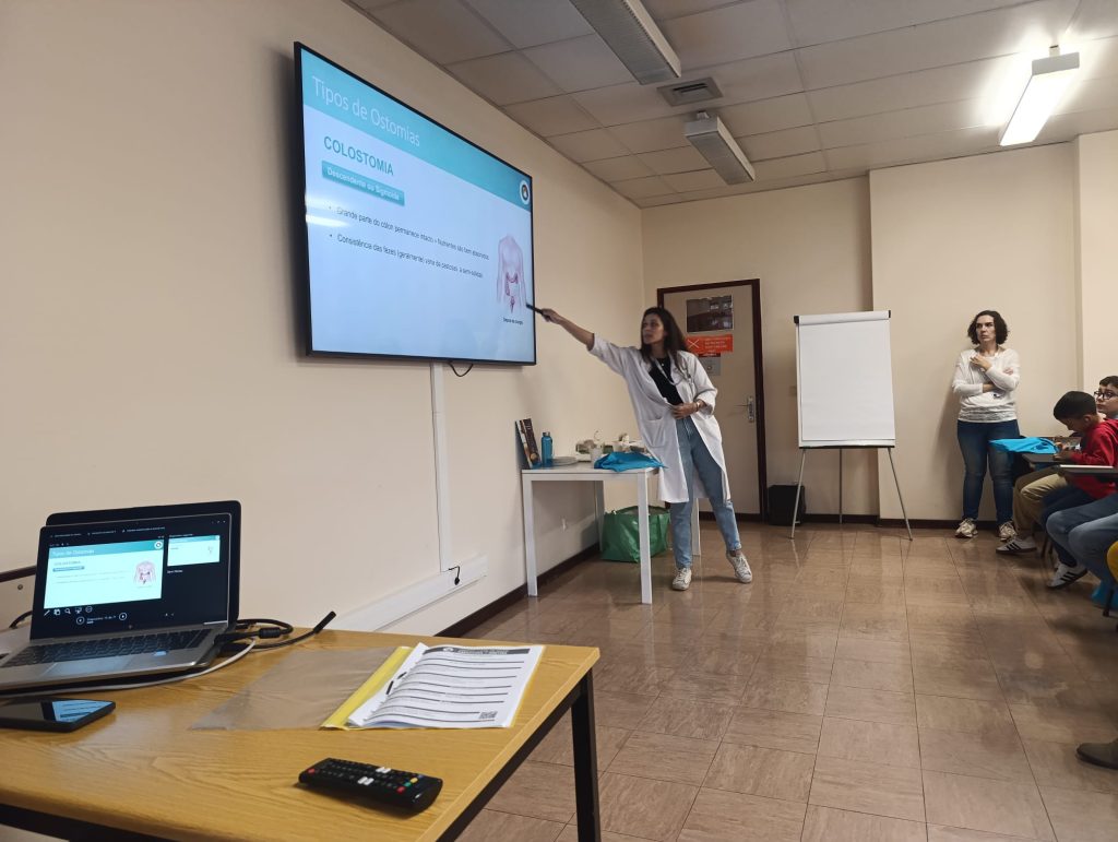 Foram abordados temas essenciais como a gestão de fluidos e eletrólitos, a prevenção de complicações digestivas e as orientações dietéticas específicas para diferentes tipos de ostomia, tendo sido uma oportunidade para desmistificar mitos e reforçar estratégias práticas para uma nutrição adequada.