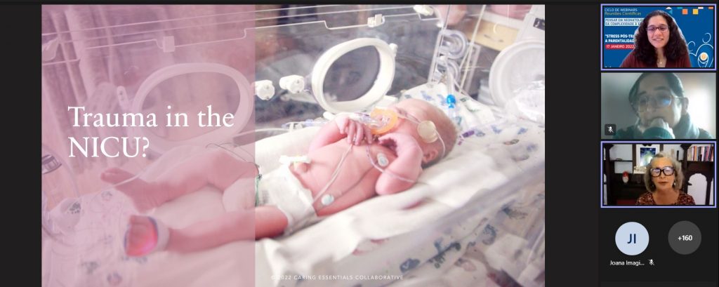 Sob o formato Webinar, aquela que foi a segunda Reunião Científica teve como tema central o “Stress Pós-traumático: a Parentalidade após a Neonatologia” e contou com a participação da conceituada enfermeira norte-americana Mary Coughlin (MSc, Caring Essentials Collaborative), com experiência de mais de 35 anos em Cuidados Neonatais, e da Psicóloga e investigadora Joana Baptista (PhD, ISCTE-IUL) que desenvolve a sua pesquisa na área da parentalidade e do desenvolvimento cognitivo e socioemocional da criança.